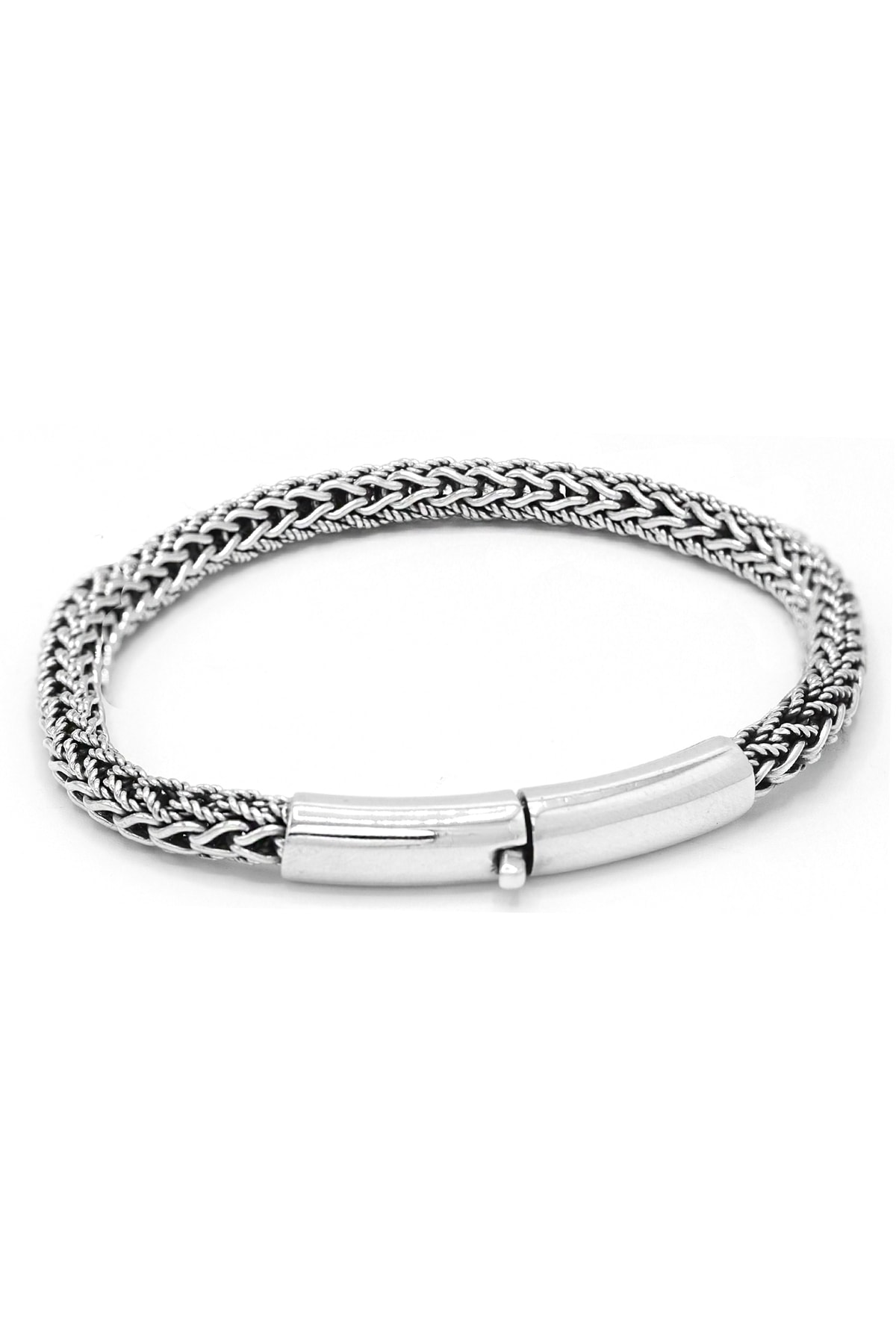 Gümüş tamamen el işçiliği kazaziye işlemeli örgülü erkek bileklik SGTL12604SIYAH Gümüş tamamen el işçiliği kazaziye işlemeli örgülü erkek bileklik SGTL12604SIYAH 20 cm