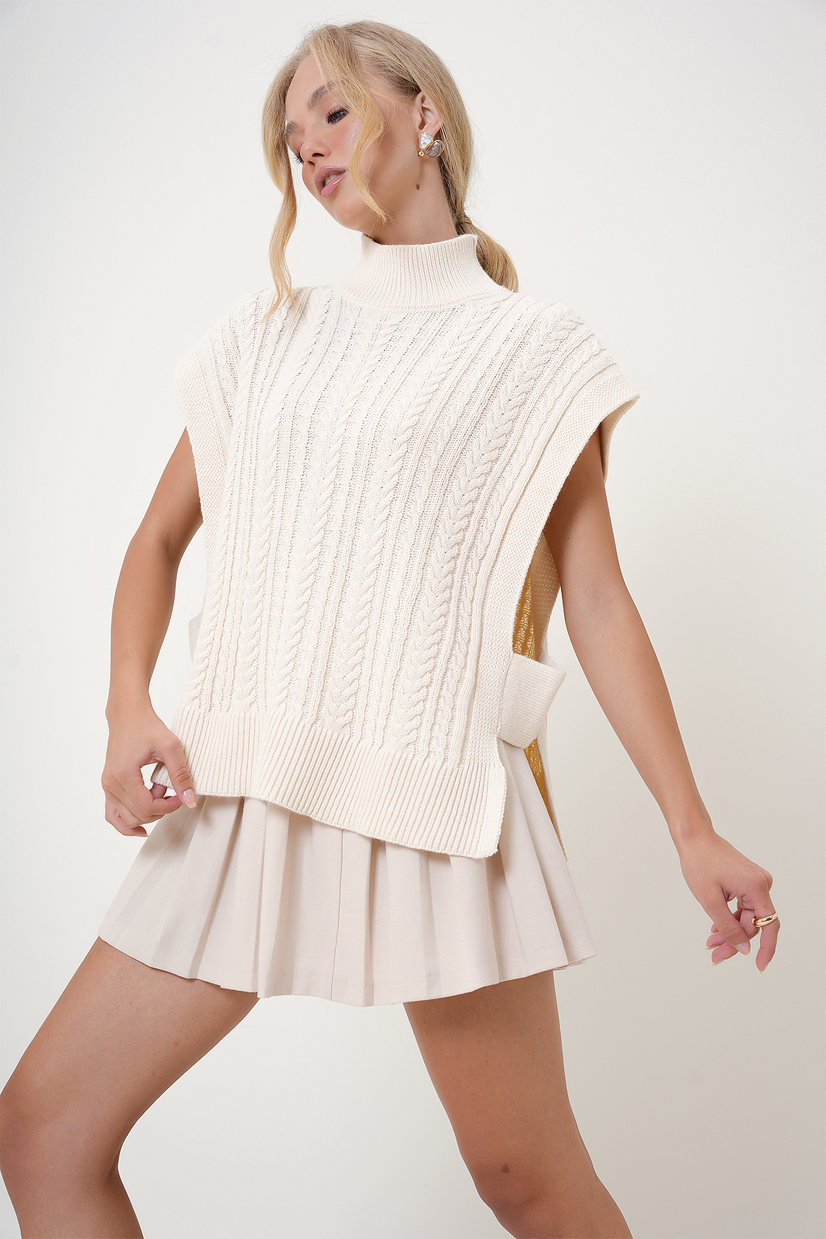 Kadın Ayarlanabilir Desenli Yandan Bağlamalı Triko Süveter Kadın Ayarlanabilir Desenli Yandan Bağlamalı Triko Süveter TYC00817788743 Standart