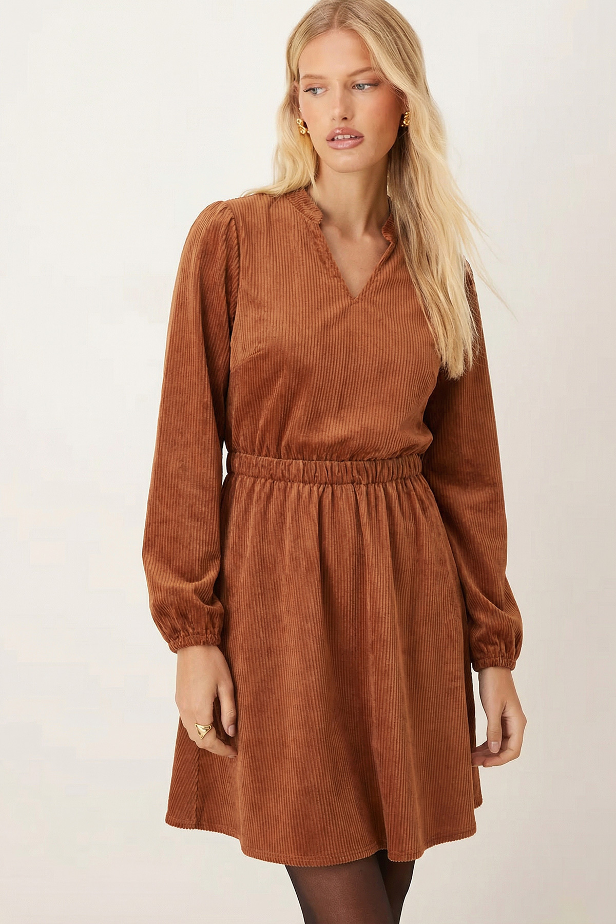 Kadın Kahve Kadife V Yaka Beli Lastikli İnce Fitilli Kloş Elbise ARM-25K001049 Kadın Kahve Kadife V Yaka Beli Lastikli İnce Fitilli Kloş Elbise ARM-25K001049 XL