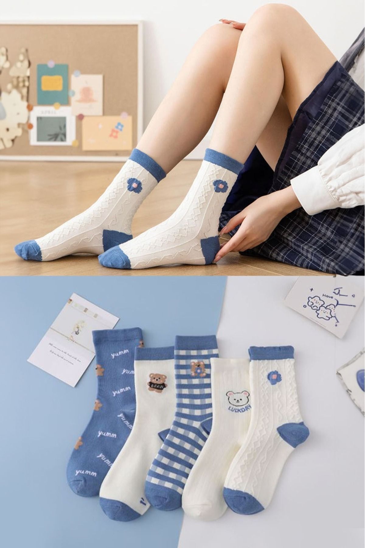 5’ Li Bear Desen Kadın Kolej Çorap 5’ Li Bear Desen Kadın Kolej Çorap bearyeni 36 - 40