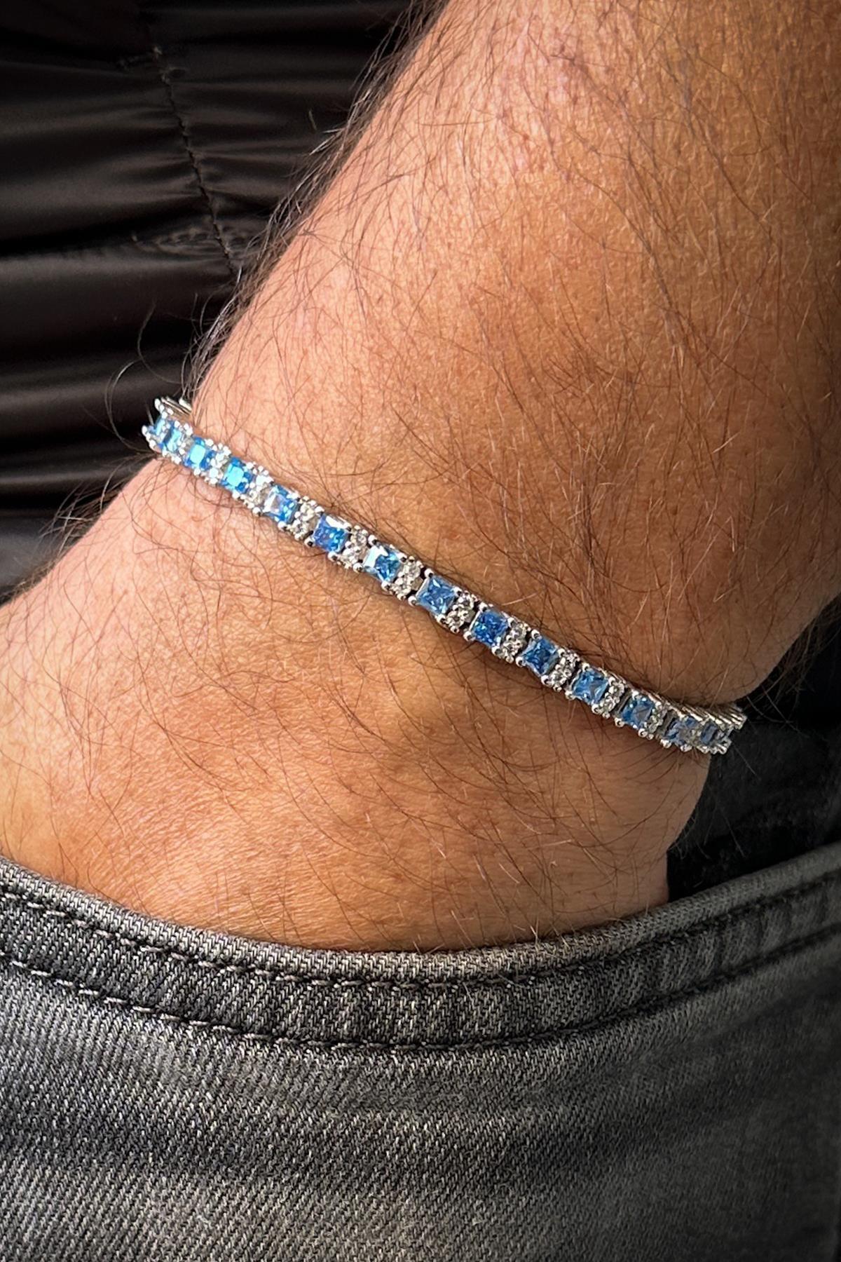 925 Ayar Gümüş Zirkon Taşlı Turkuaz Renkli Tennis Erkek Bileklik FRJ12344-3344-M 925 Ayar Gümüş Zirkon Taşlı Turkuaz Renkli Tennis Erkek Bileklik FRJ12344-3344-M تک سایز