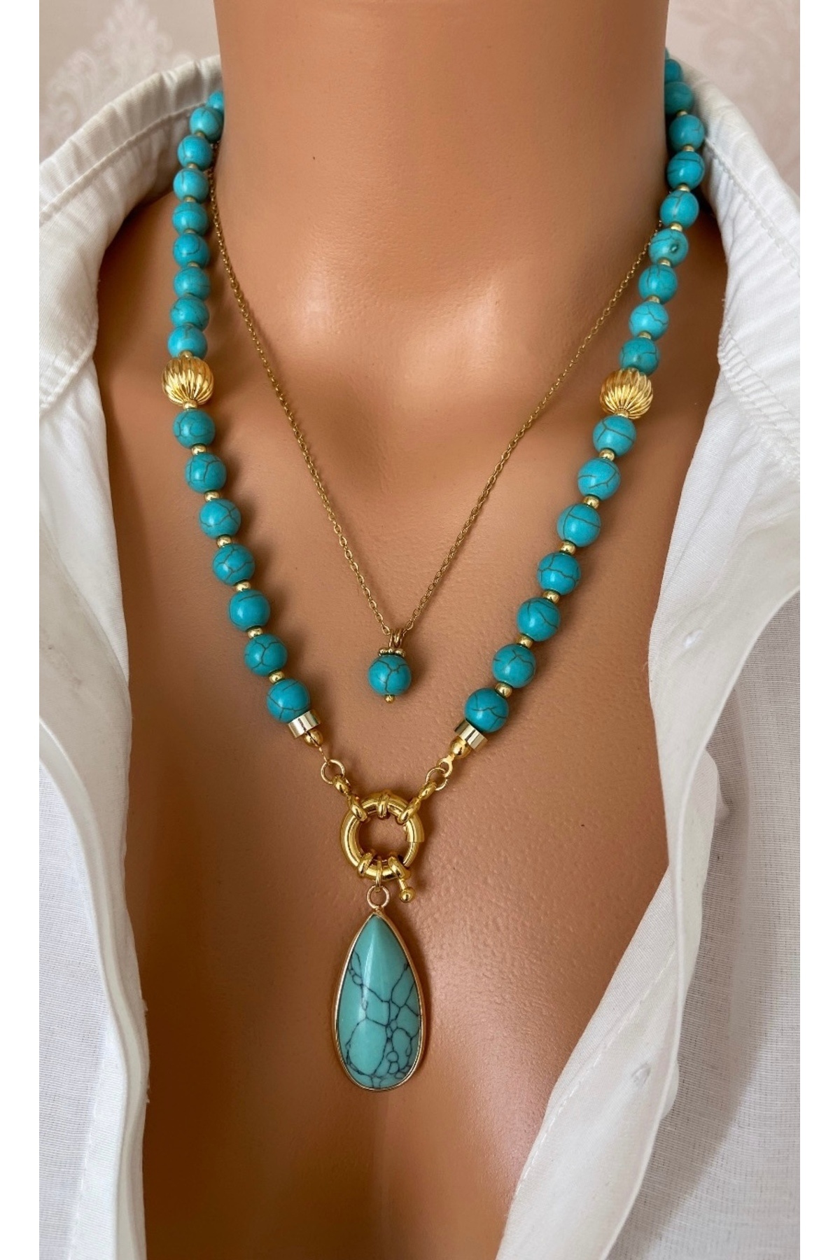 (2 KOLYE) Doğal Taş Mavi Turkuaz Firuze Taşı Çelik Zincir Altın Kaplama Çerçeveli Taş Uç Kadın Kolye (2 KOLYE) Doğal Taş Mavi Turkuaz Firuze Taşı Çelik Zincir Altın Kaplama Çerçeveli Taş Uç Kadın Kolye firuzeözeluçikilikolye M