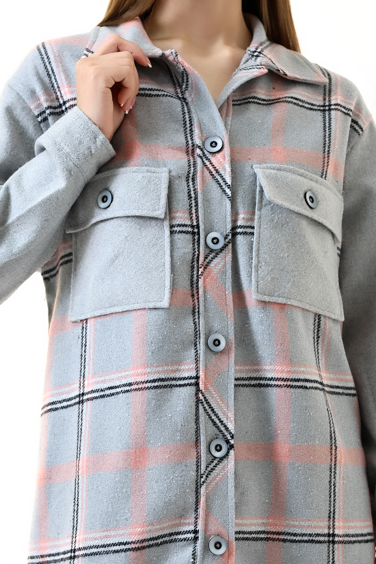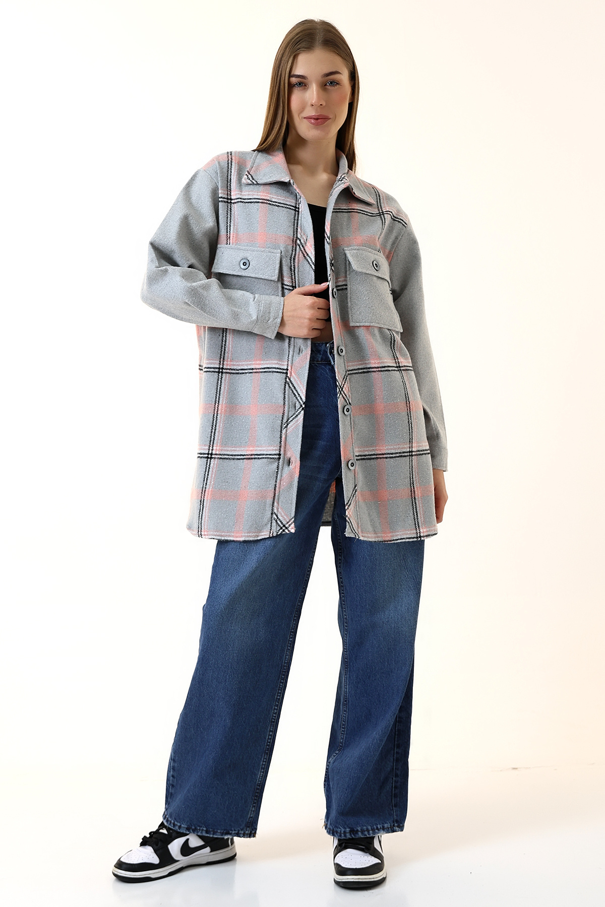 Kadın Pembe Gri Ekose Oversize Oduncu Gömlek Kadın Pembe Gri Ekose Oversize Oduncu Gömlek UJ1021 2XL