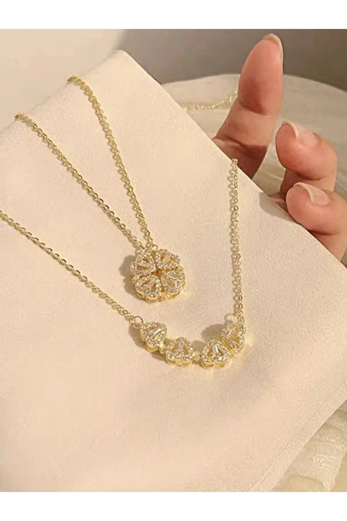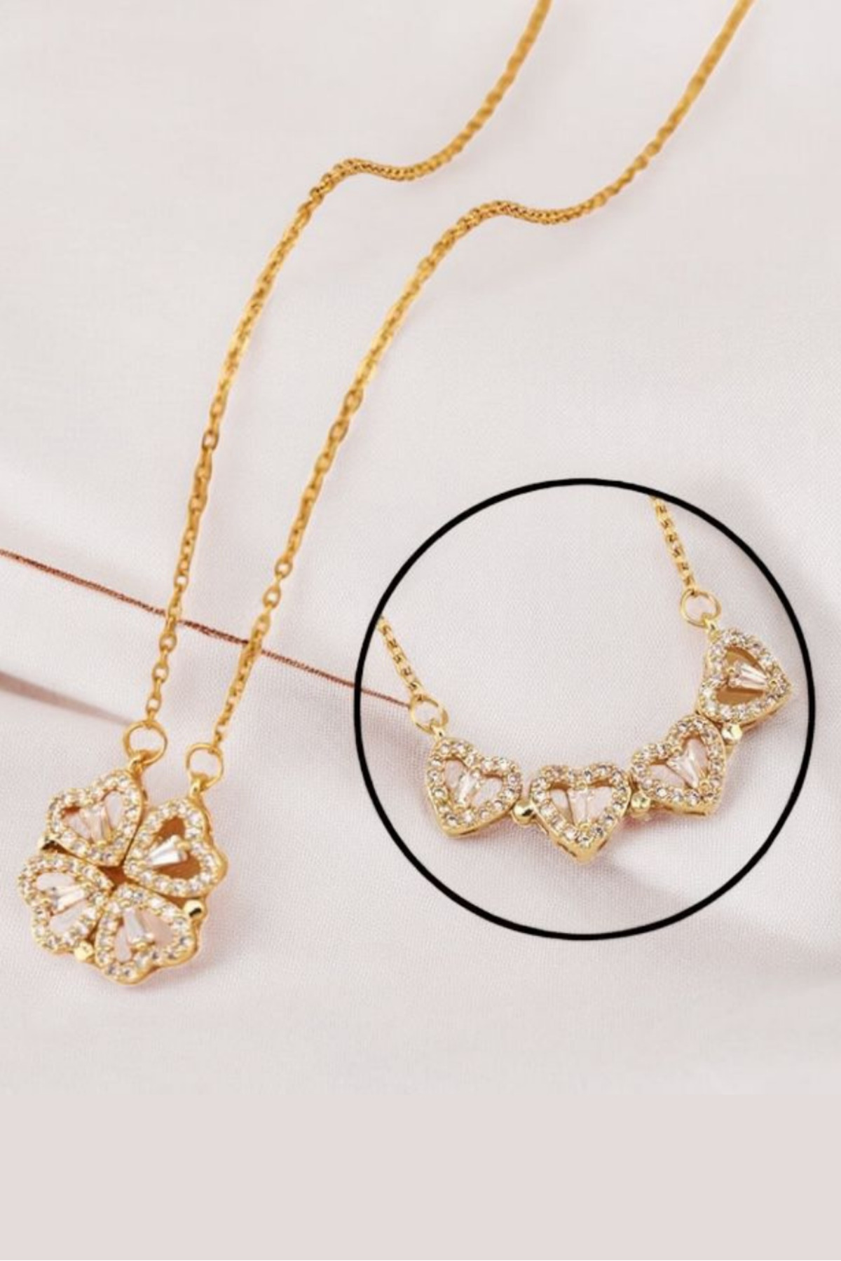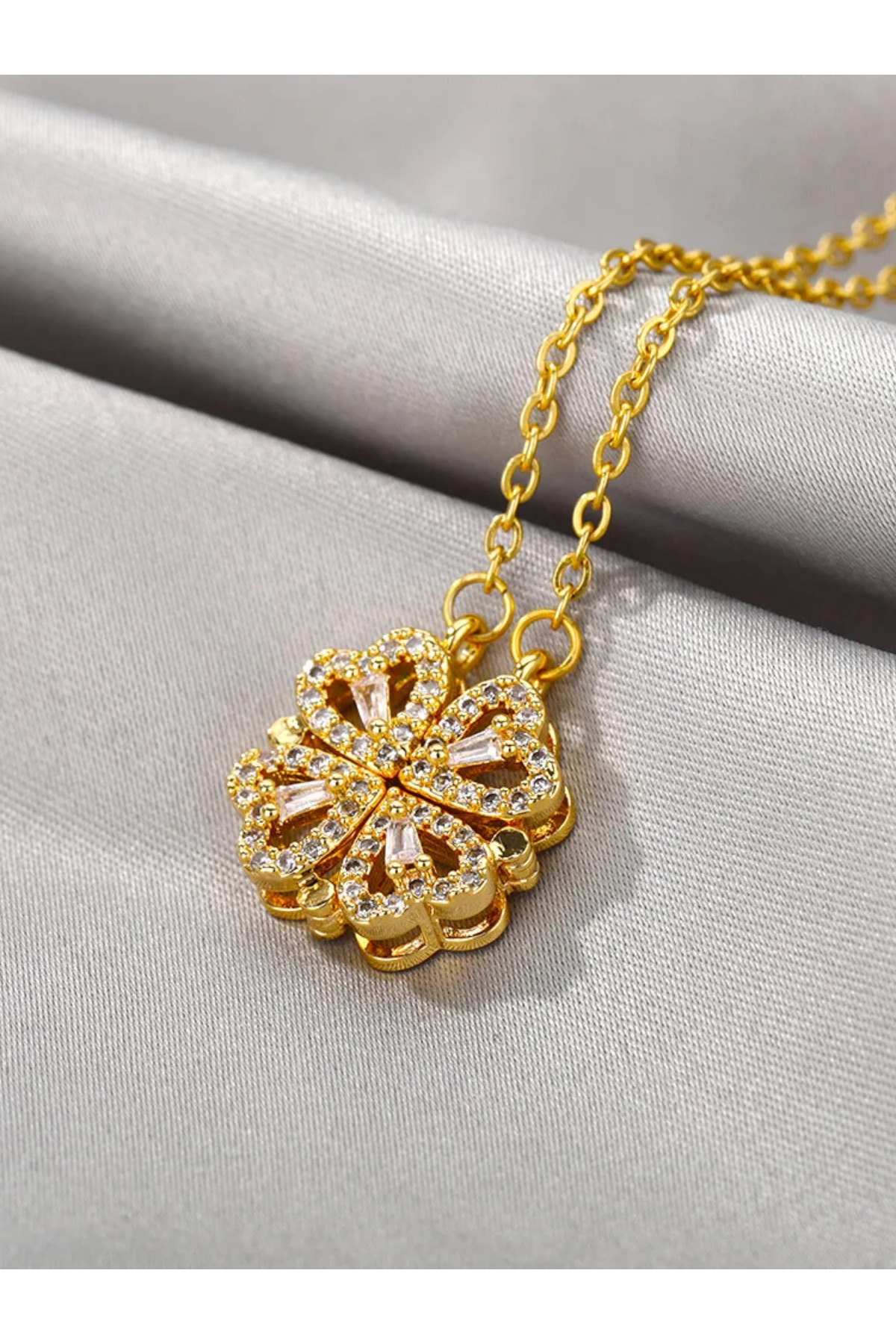 Açılınca Kalp Kapanınca Yonca Kolye | Kararmaz Çelik, Zirkon Taş, Altın Renk, 50 Cm Açılınca Kalp Kapanınca Yonca Kolye | Kararmaz Çelik, Zirkon Taş, Altın Renk, 50 Cm DesignedForYou690 50 cm