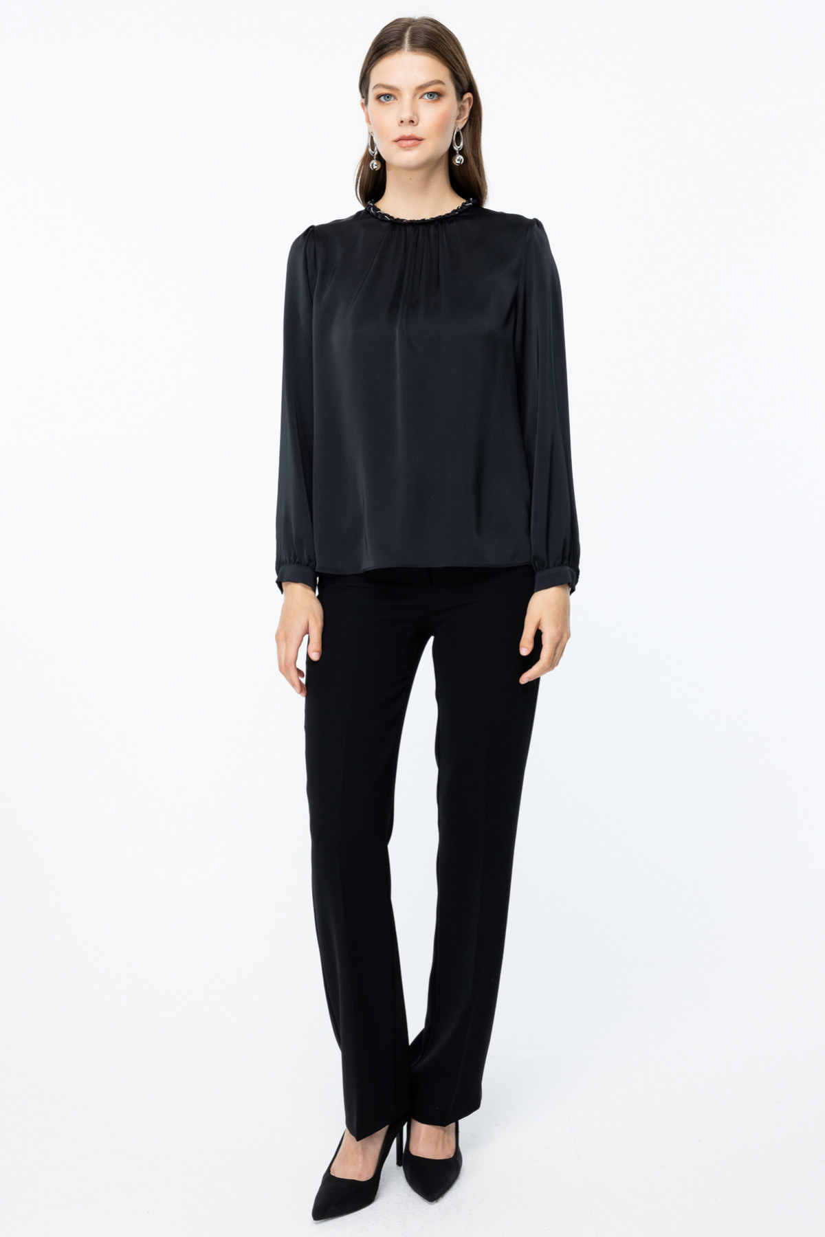 Kadın Örgülü Saten Bluz 2003 Siyah Kadın Örgülü Saten Bluz 2003 Siyah 25K.EKL.BLZ.02003.1 44