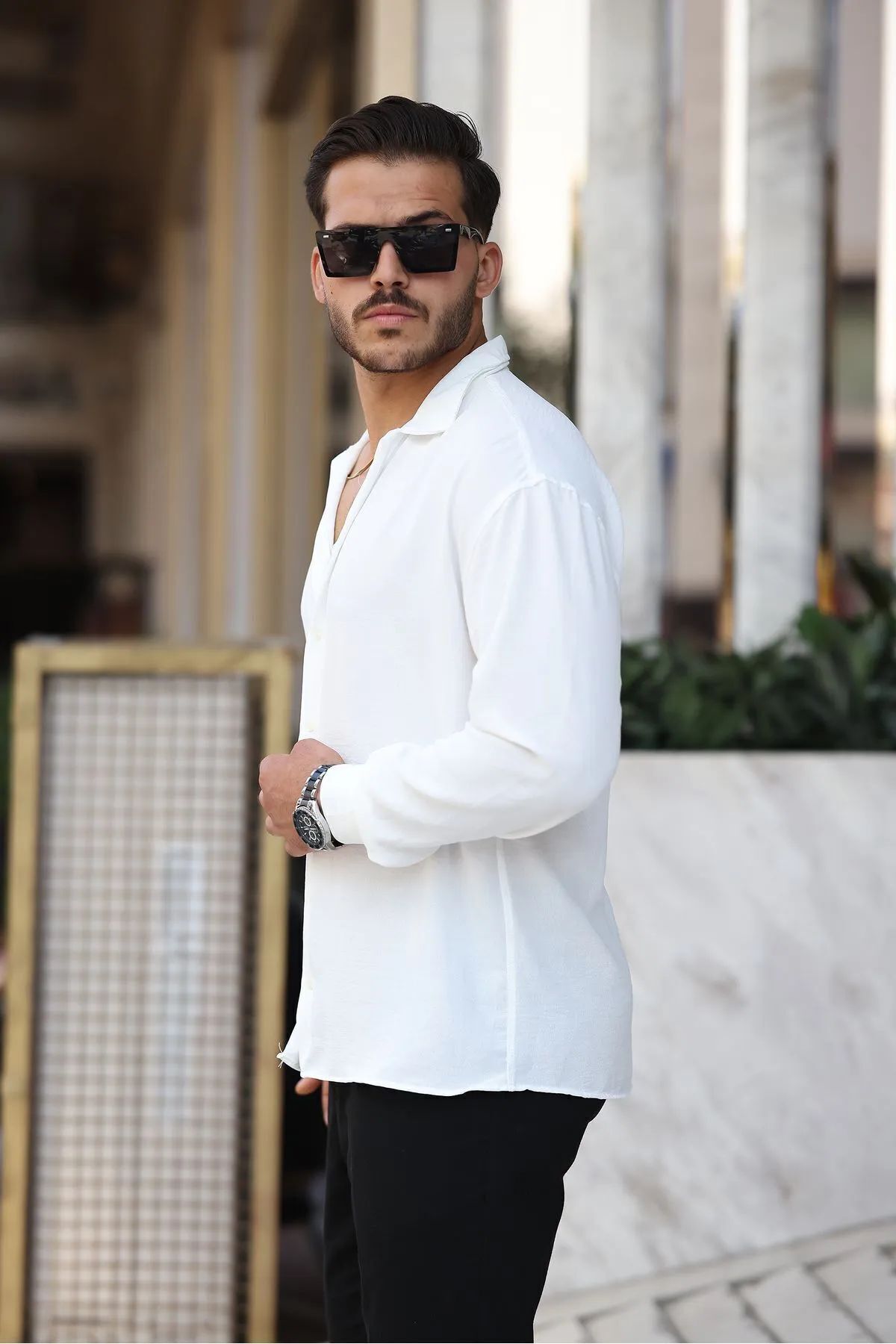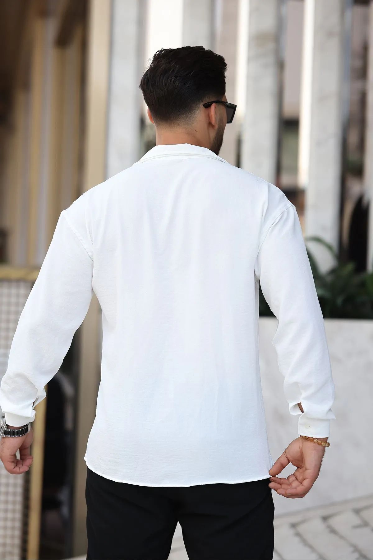 Erkek Beyaz Bol Kesim Dokulu Oversize Salaş Ayrobin Gömlek Erkek Beyaz Bol Kesim Dokulu Oversize Salaş Ayrobin Gömlek 2310 XL