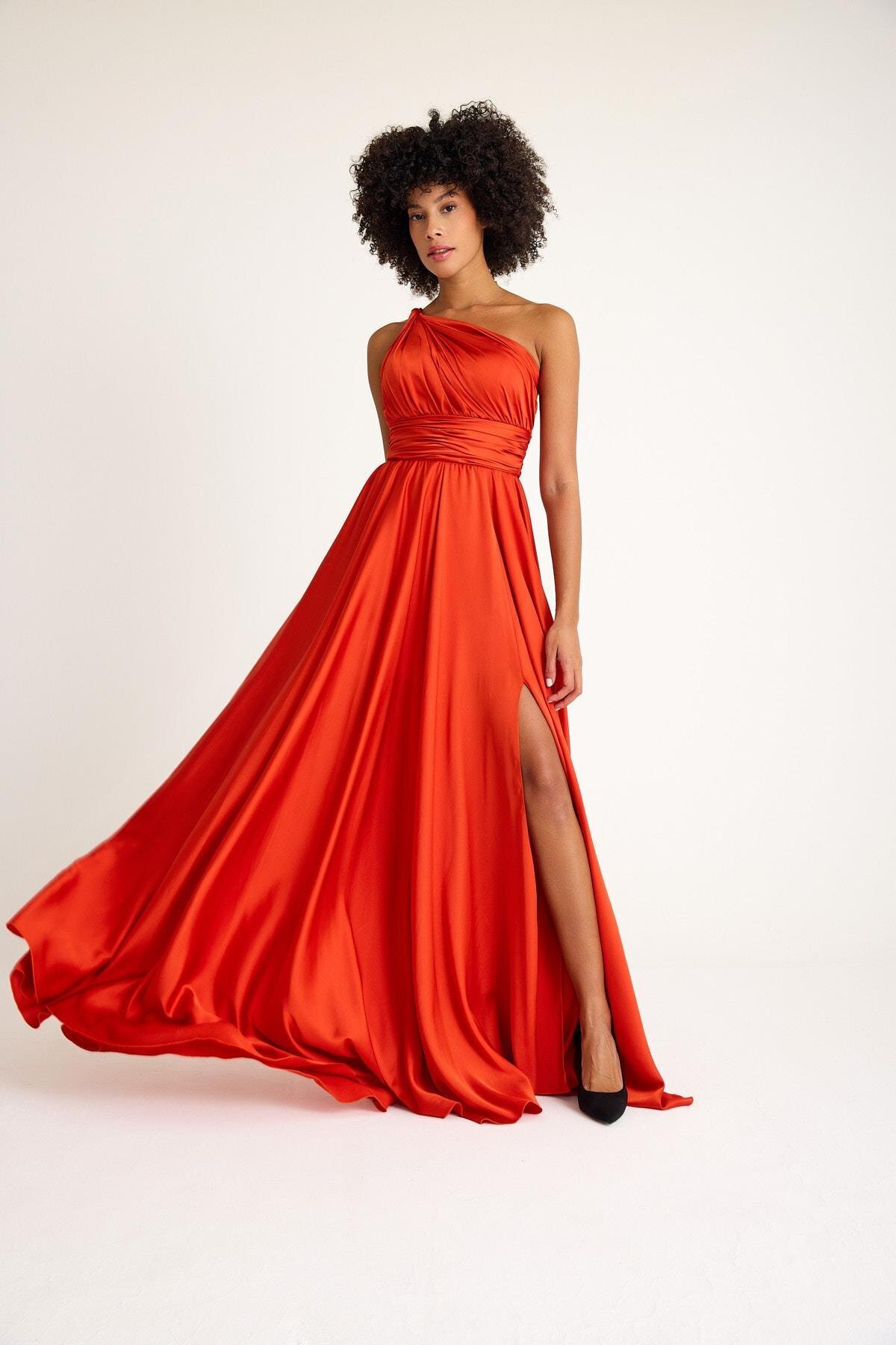 4923ST Helen Tek Omuz Saten Elbise 4923ST Helen Tek Omuz Saten Elbise 42