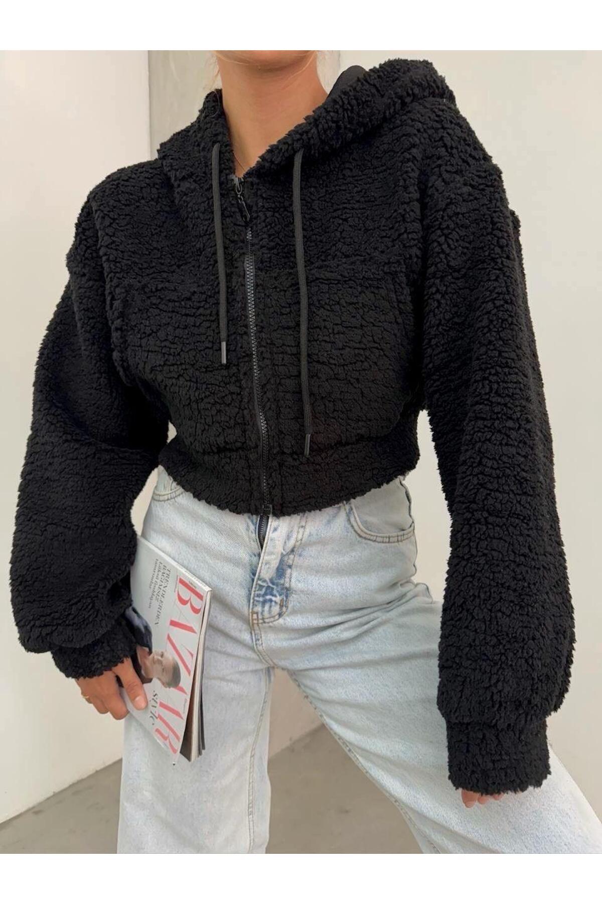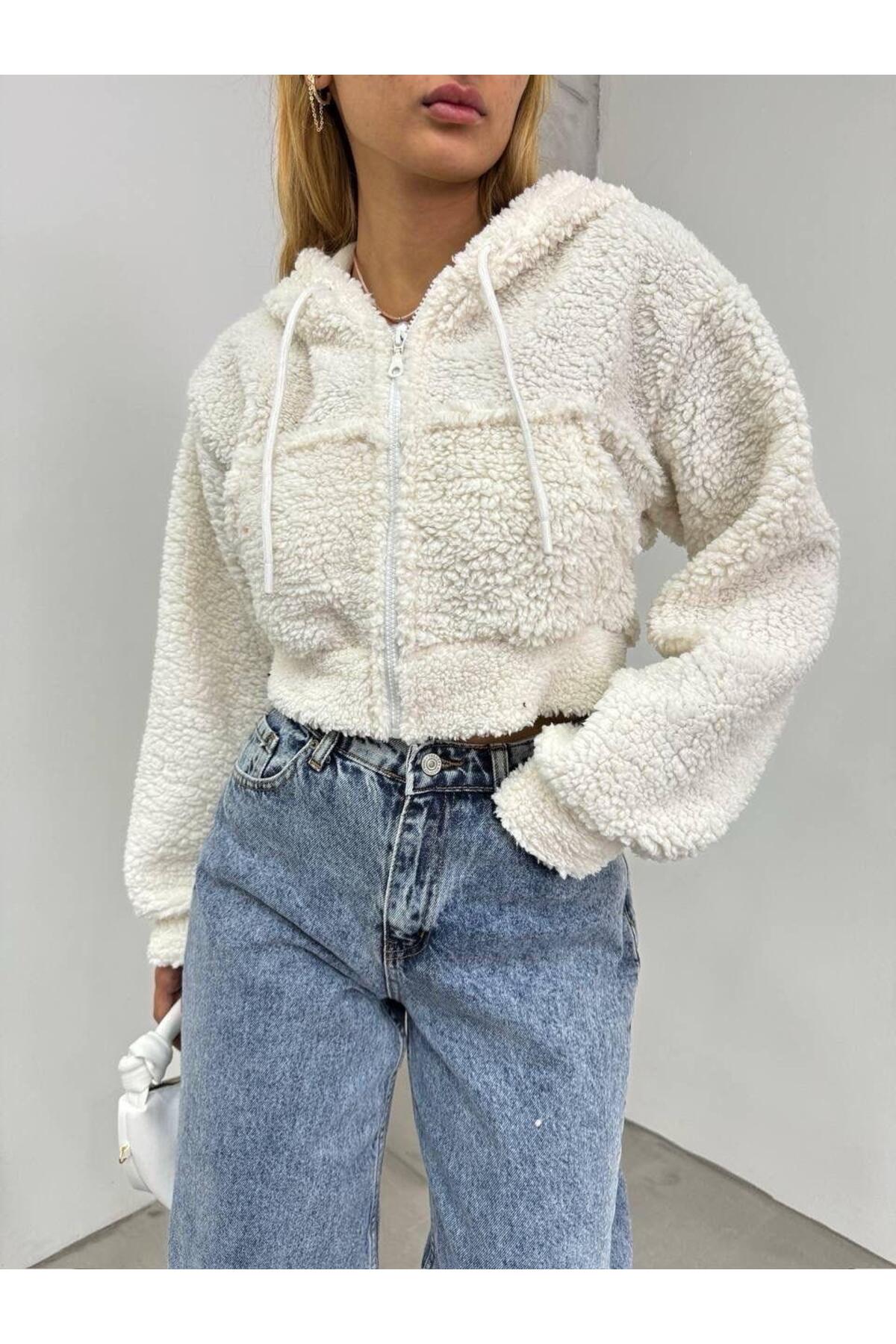 Kadın İçi Astarlı Crop Peluş Kuzu Mont Kadın İçi Astarlı Crop Peluş Kuzu Mont MY00002 L