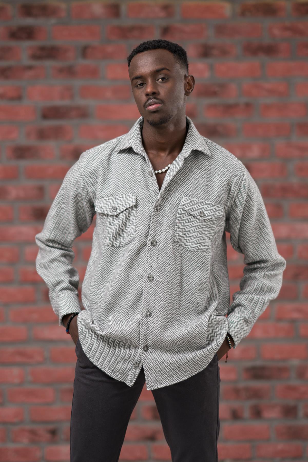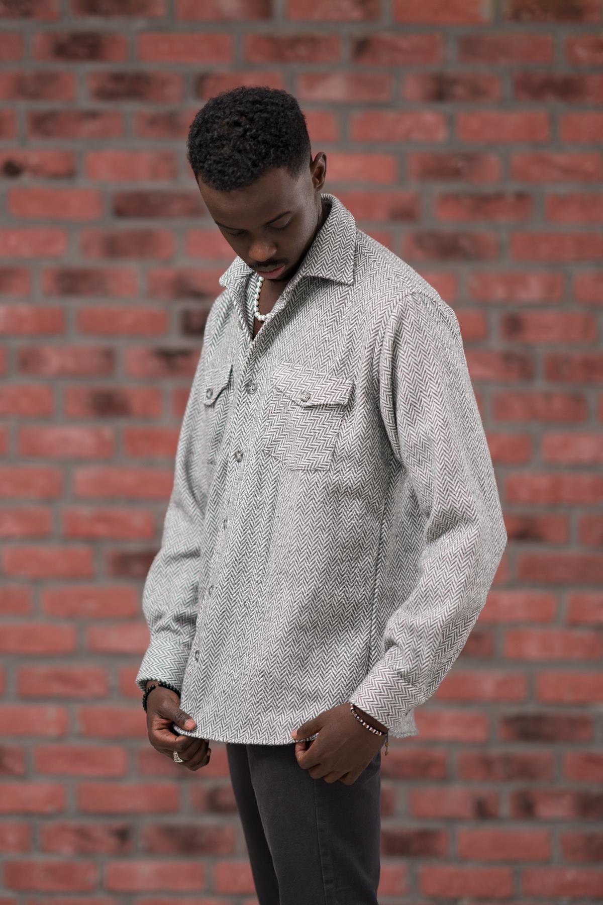 Oversize (Bol Kesim) Balıksırtı Desenli Çift Cepli Oduncu Gömlek Oversize (Bol Kesim) Balıksırtı Desenli Çift Cepli Oduncu Gömlek MD0401 2XL