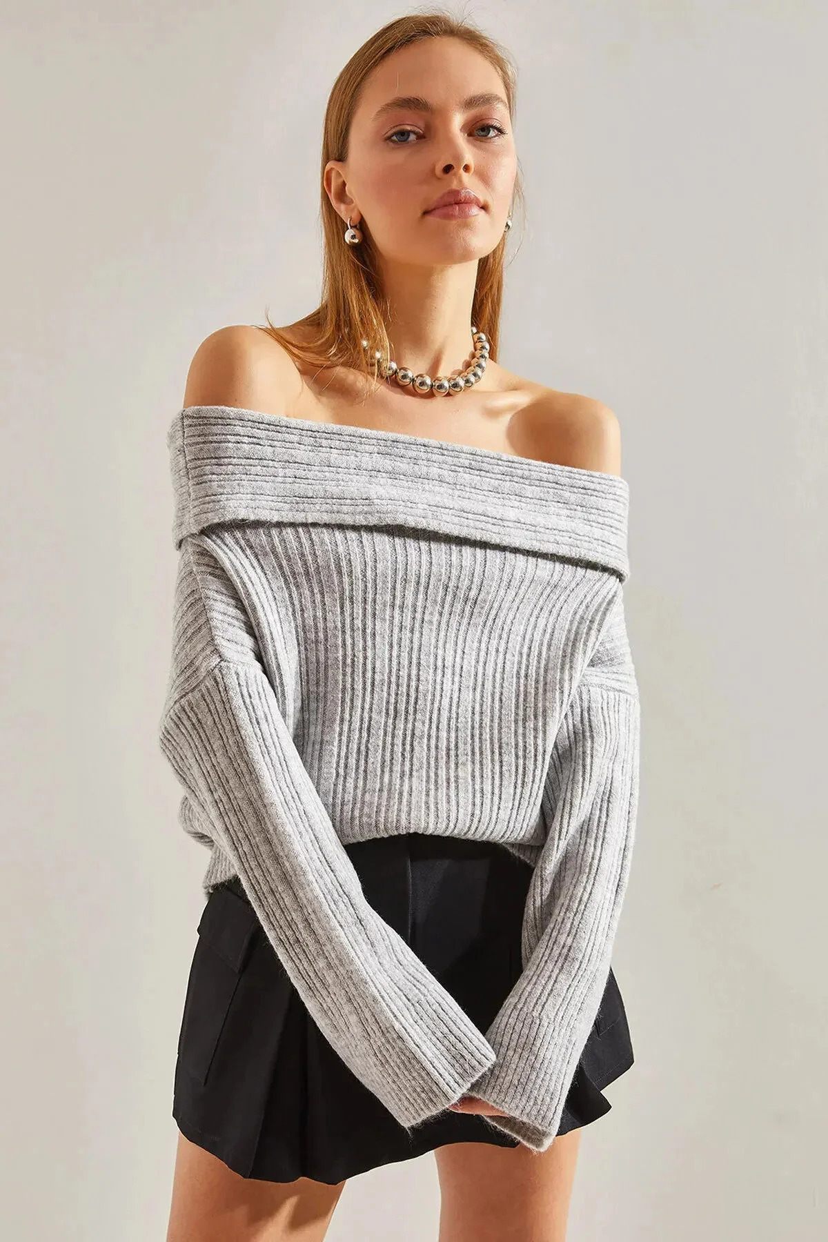 Madamerose Degaje Madonna Yaka Fitilli Triko Kazak Bordo Madamerose Degaje Madonna Yaka Fitilli Triko Kazak Bordo MLSMAD01 Standart