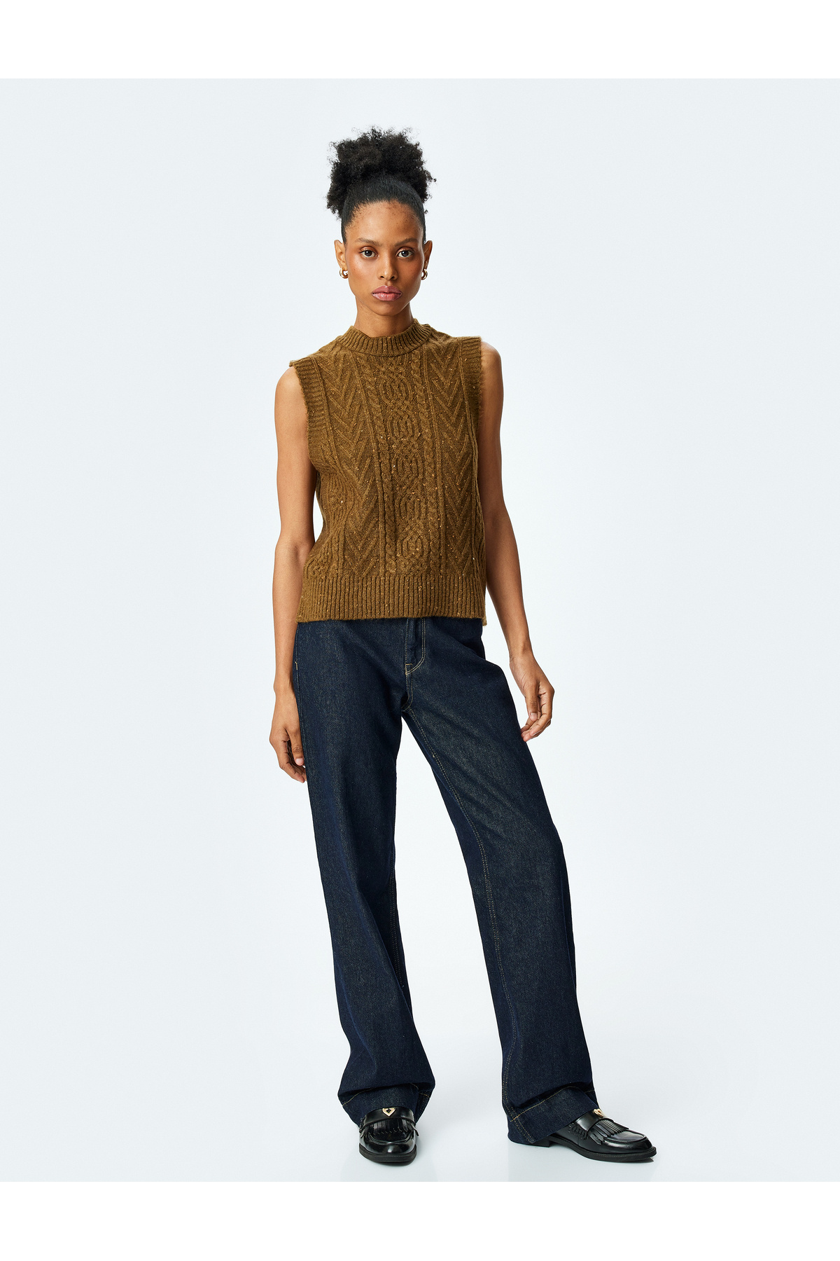 Yıpratılmış Detaylı Balıkçı Yaka Taşlı Saç Örgü Süveter Yıpratılmış Detaylı Balıkçı Yaka Taşlı Saç Örgü Süveter 5WAK20072HT XL