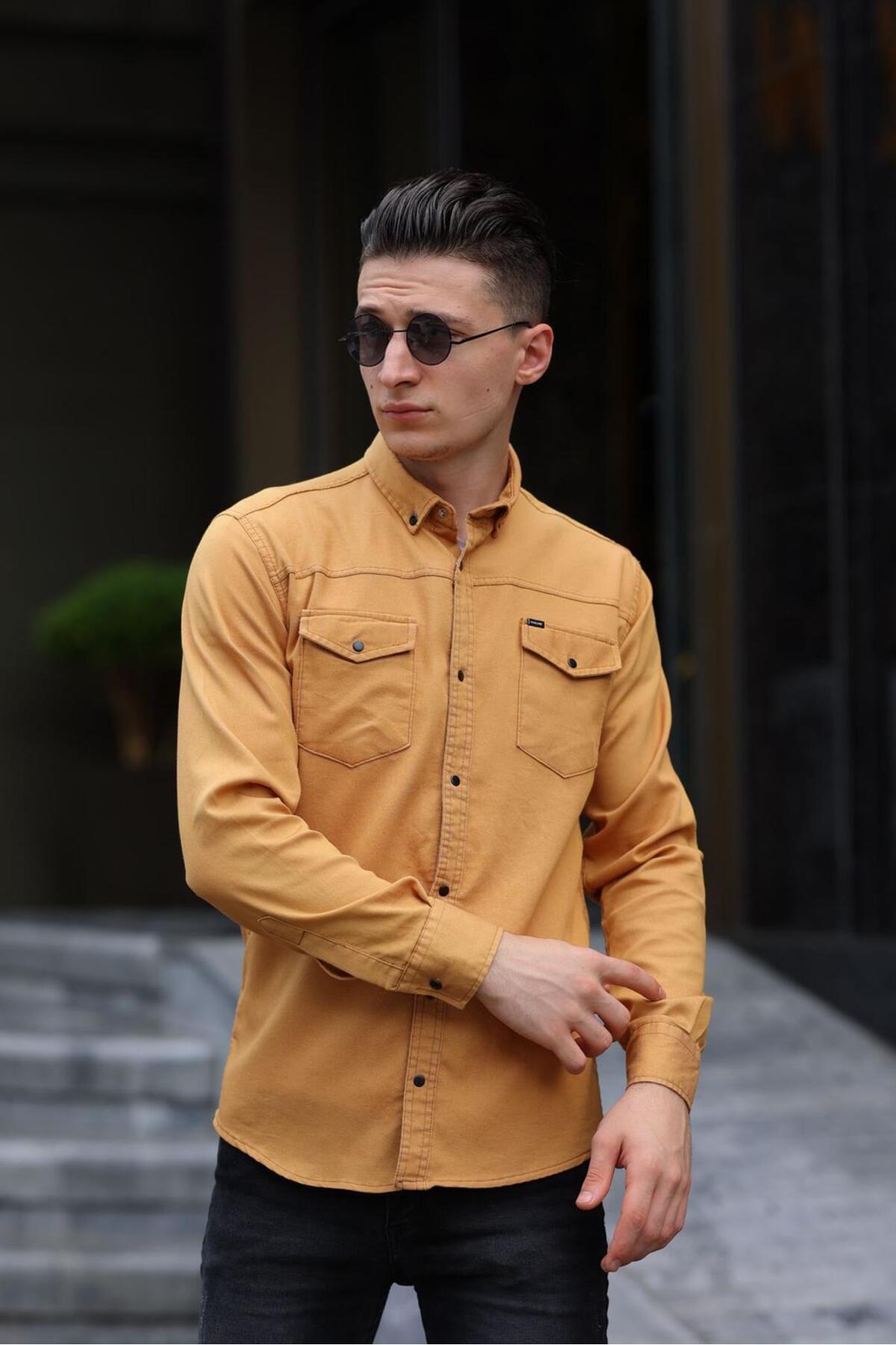 Çift Cepli Çıtçıtlı Gabardin Sarı Erkek Gömlek Çift Cepli Çıtçıtlı Gabardin Sarı Erkek Gömlek WKM1111 2XL