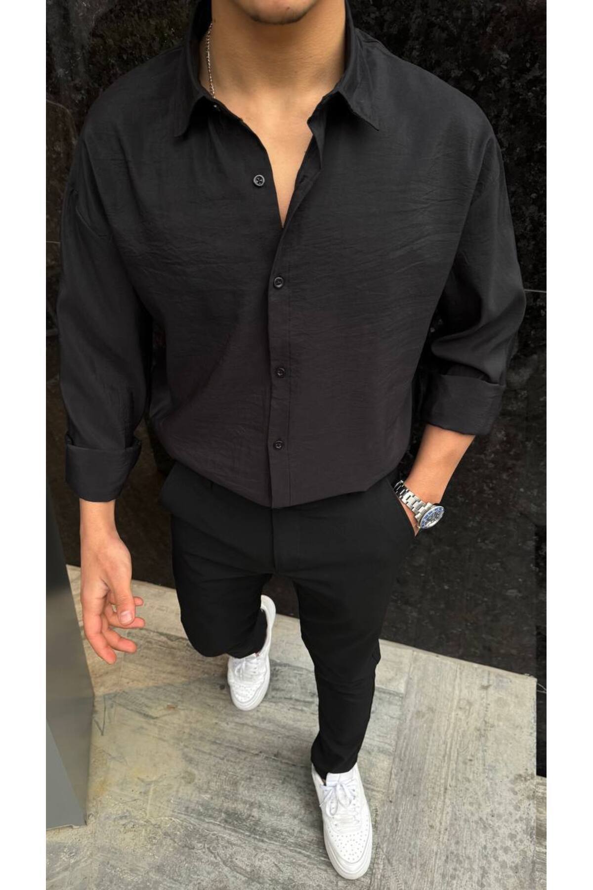 Çift Cepli Çıtçıtlı Siyah Erkek Gömlek Çift Cepli Çıtçıtlı Siyah Erkek Gömlek WKM1111 2XL