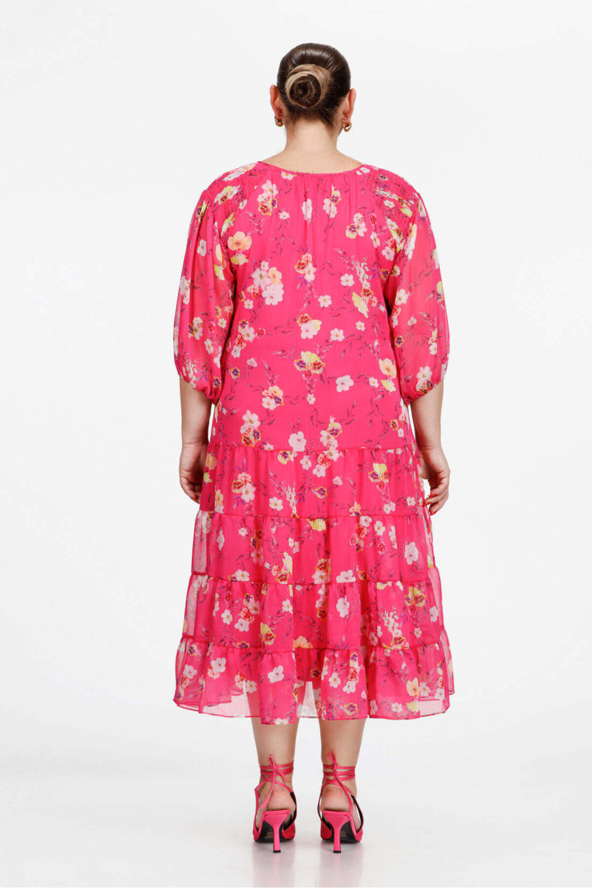 Çiçekli Katlı Şifon Elbise - Fuşya Çiçekli Katlı Şifon Elbise - Fuşya 19407 52