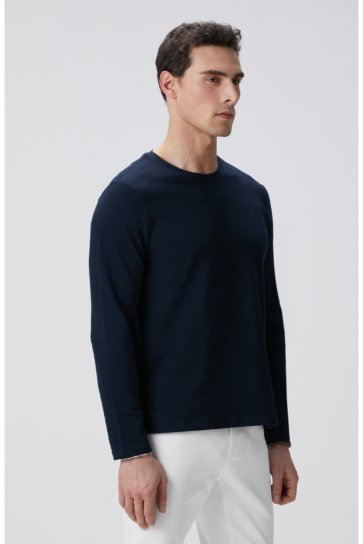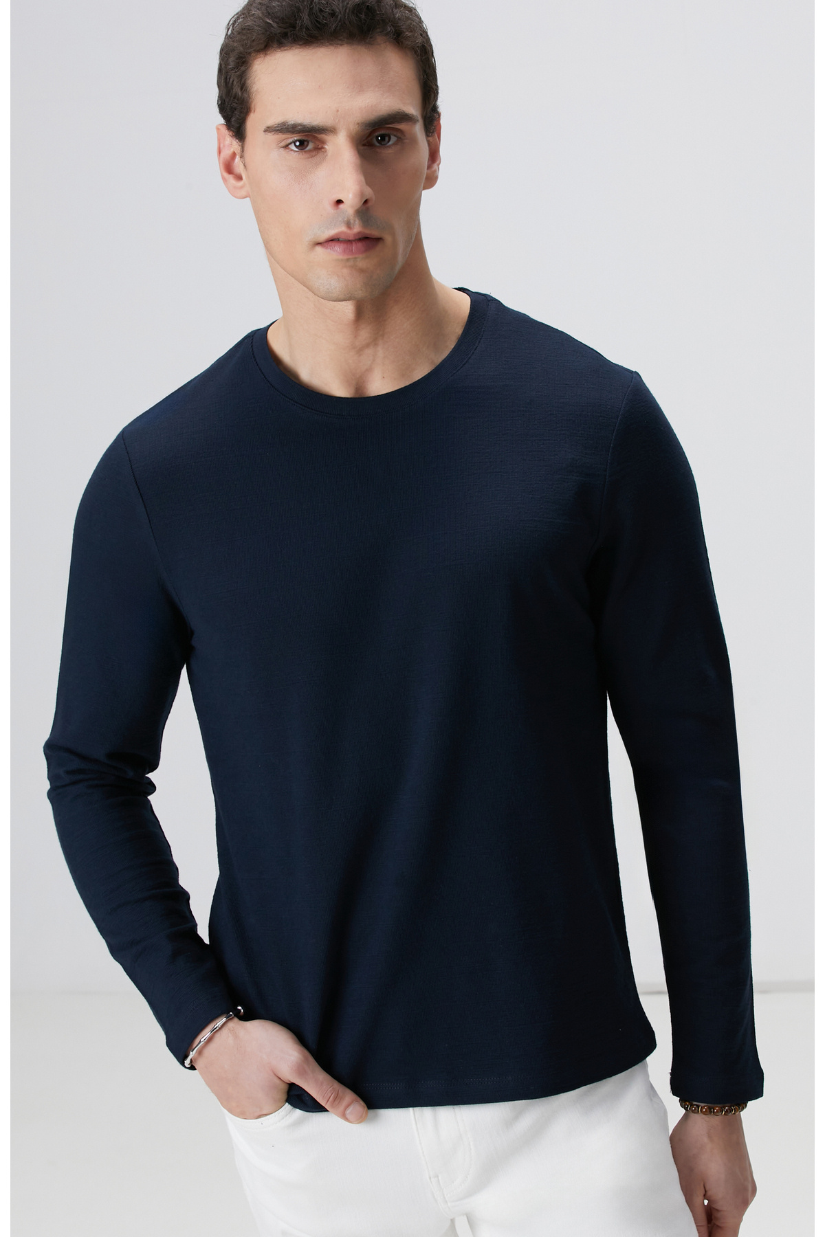 Lacivert Uzun Kollu Pamuk T-shirt Lacivert Uzun Kollu Pamuk T-shirt TYC0FF1D3BAF8BC310 XL