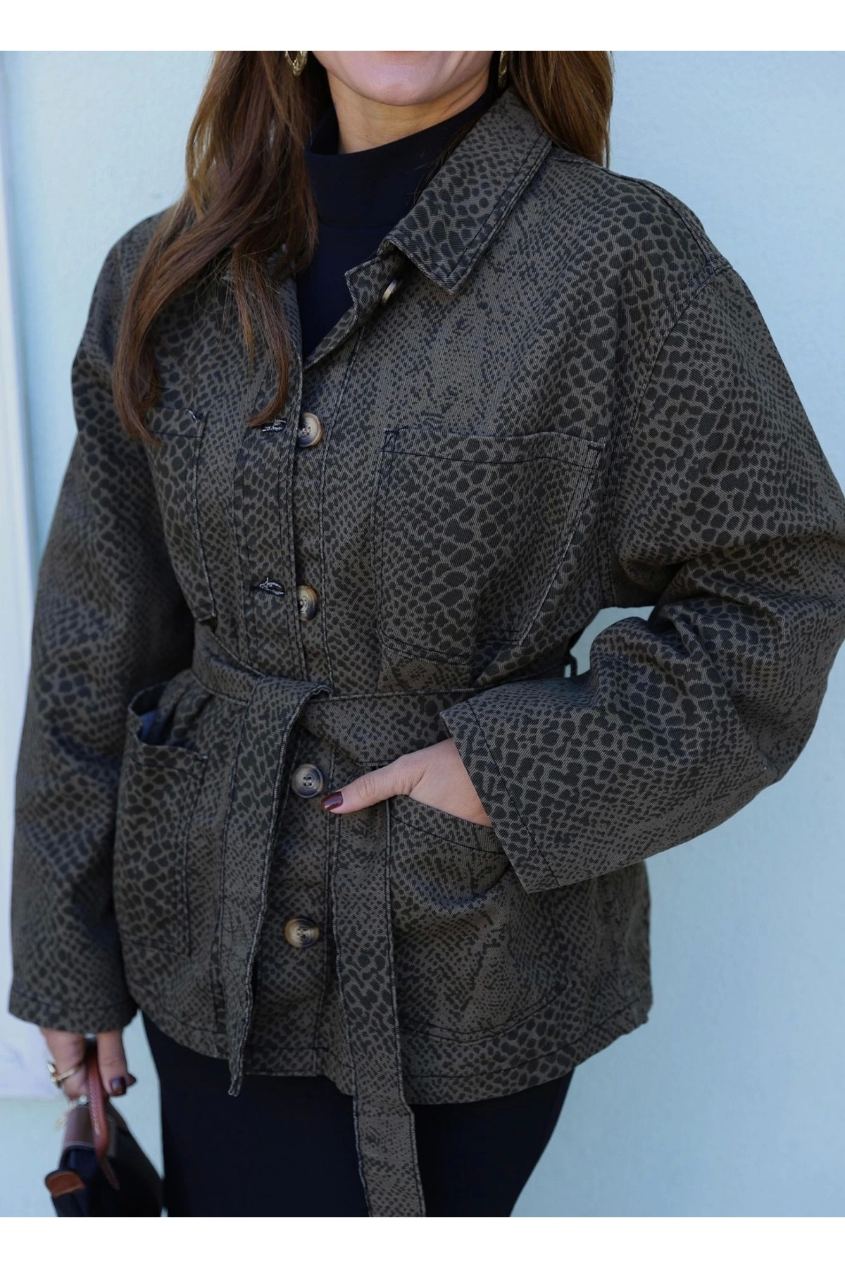 HAKİ LEOPAR DESEN GABARDİN CEKET HAKİ LEOPAR DESEN GABARDİN CEKET EY-CKT0565 L