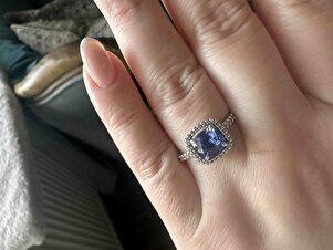 Işıltılı Kare Mavi Hale İddialı Yüzük Işıltılı Kare Mavi Hale İddialı Yüzük 193550C01 60