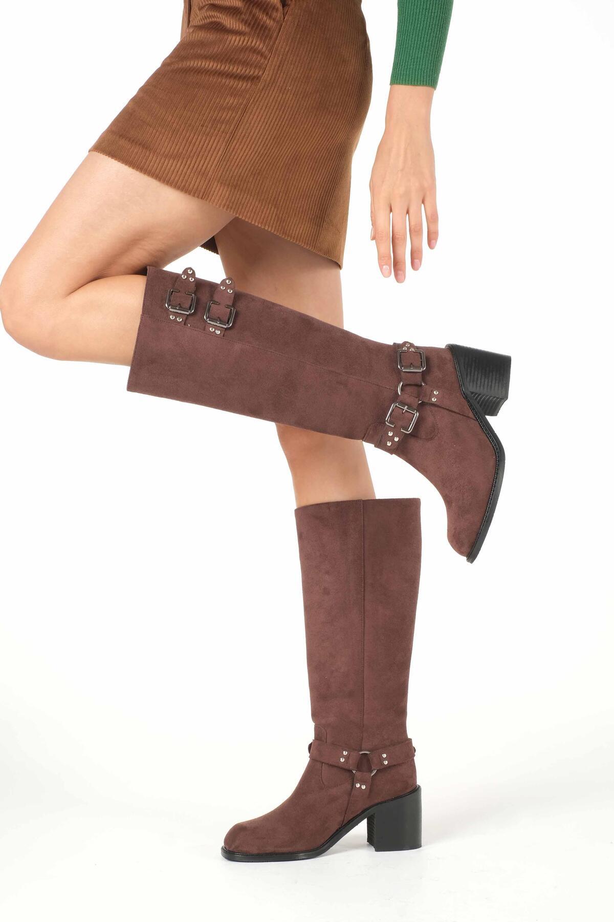 Edith Kahverengi Deri Kalın Tabanlı Kürk Astarlı Kadın Çizme Edith Kahverengi Deri Kalın Tabanlı Kürk Astarlı Kadın Çizme 01580BLC 41