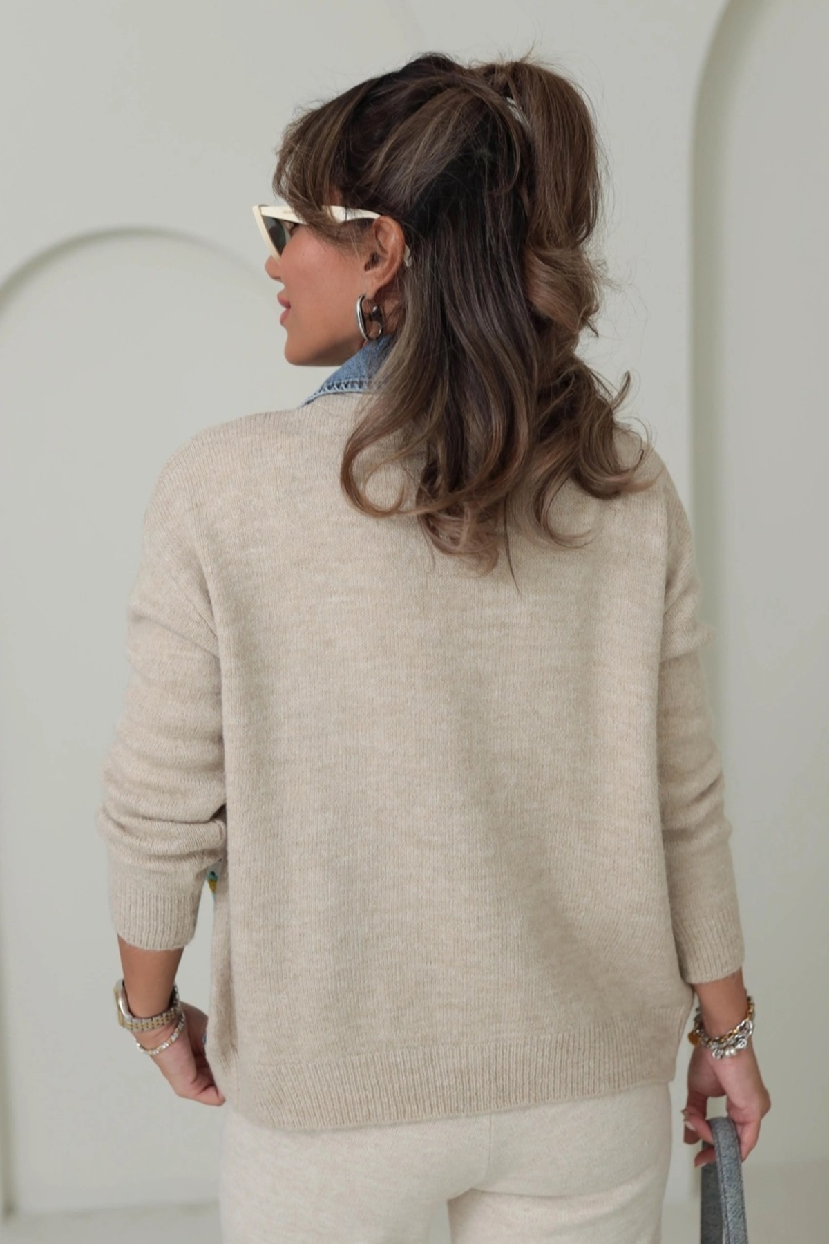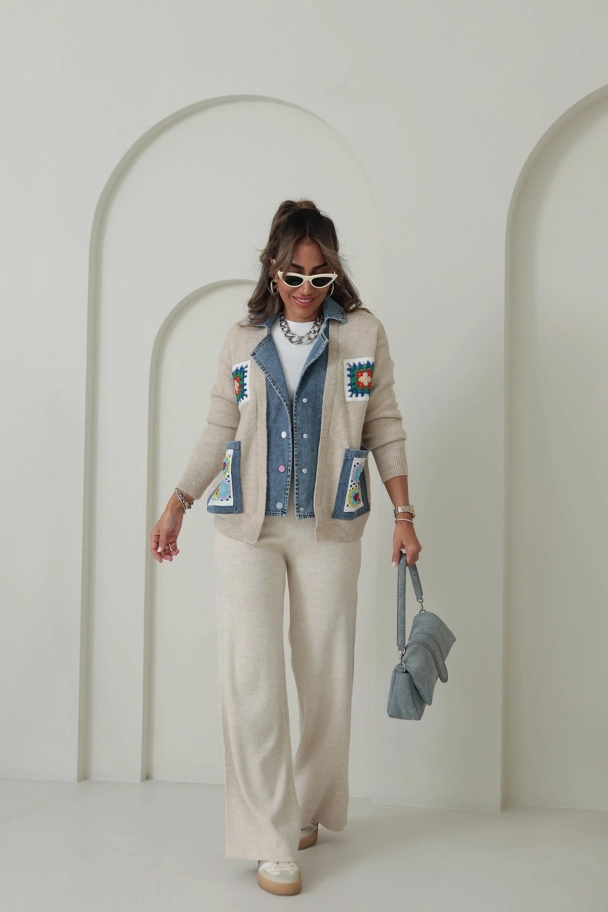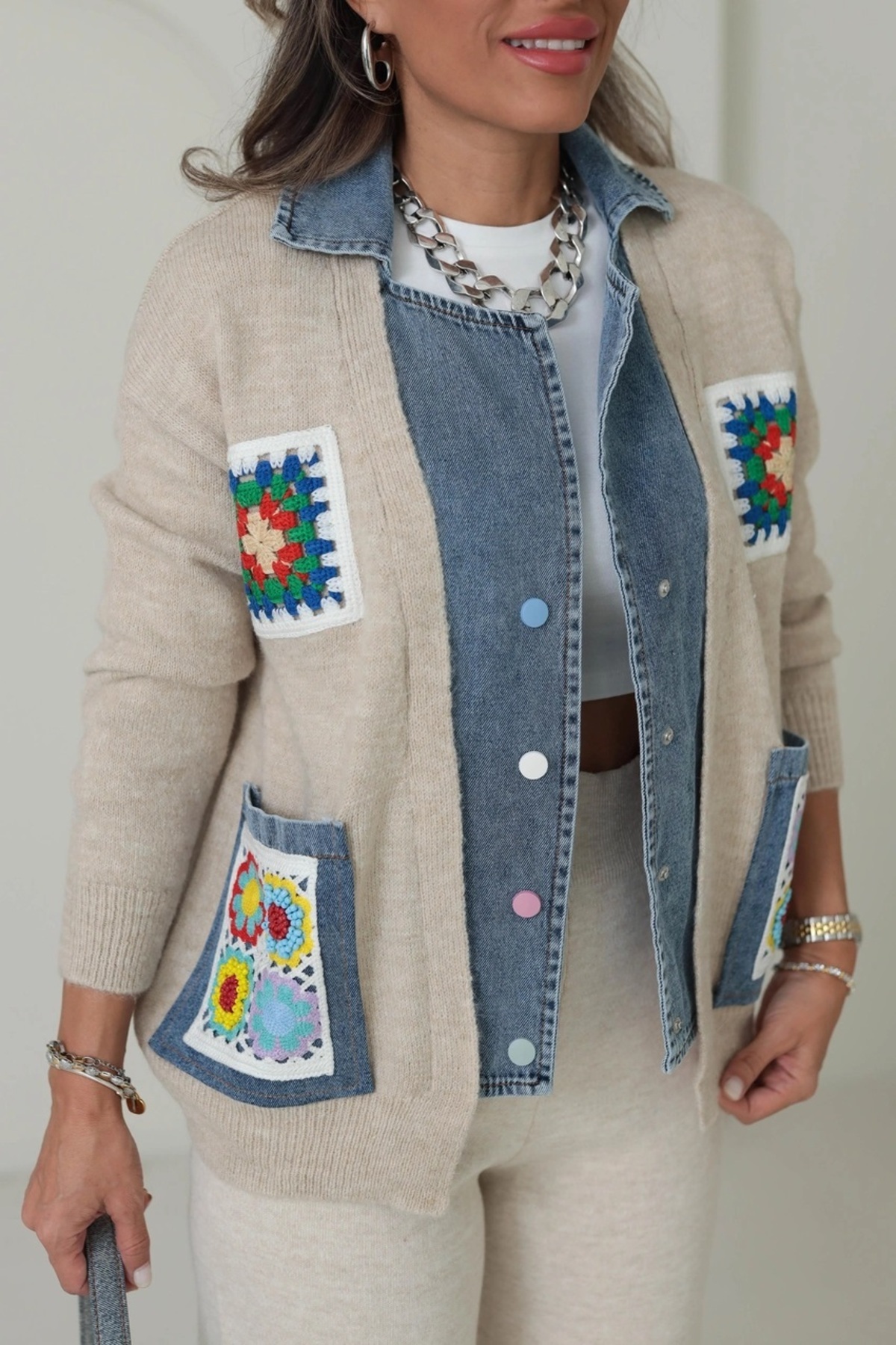 Cepleri Nakış İşlemeli Kot Detaylı Bej Hırka Cepleri Nakış İşlemeli Kot Detaylı Bej Hırka LAVCARDİGAN001 Standart