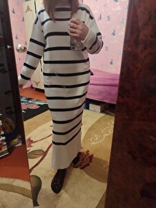 Kadın Ekru-siyah Çizgili Oversize Triko Elbise 71135 Kadın Ekru-siyah Çizgili Oversize Triko Elbise 71135 TYB71135140412119 Standart