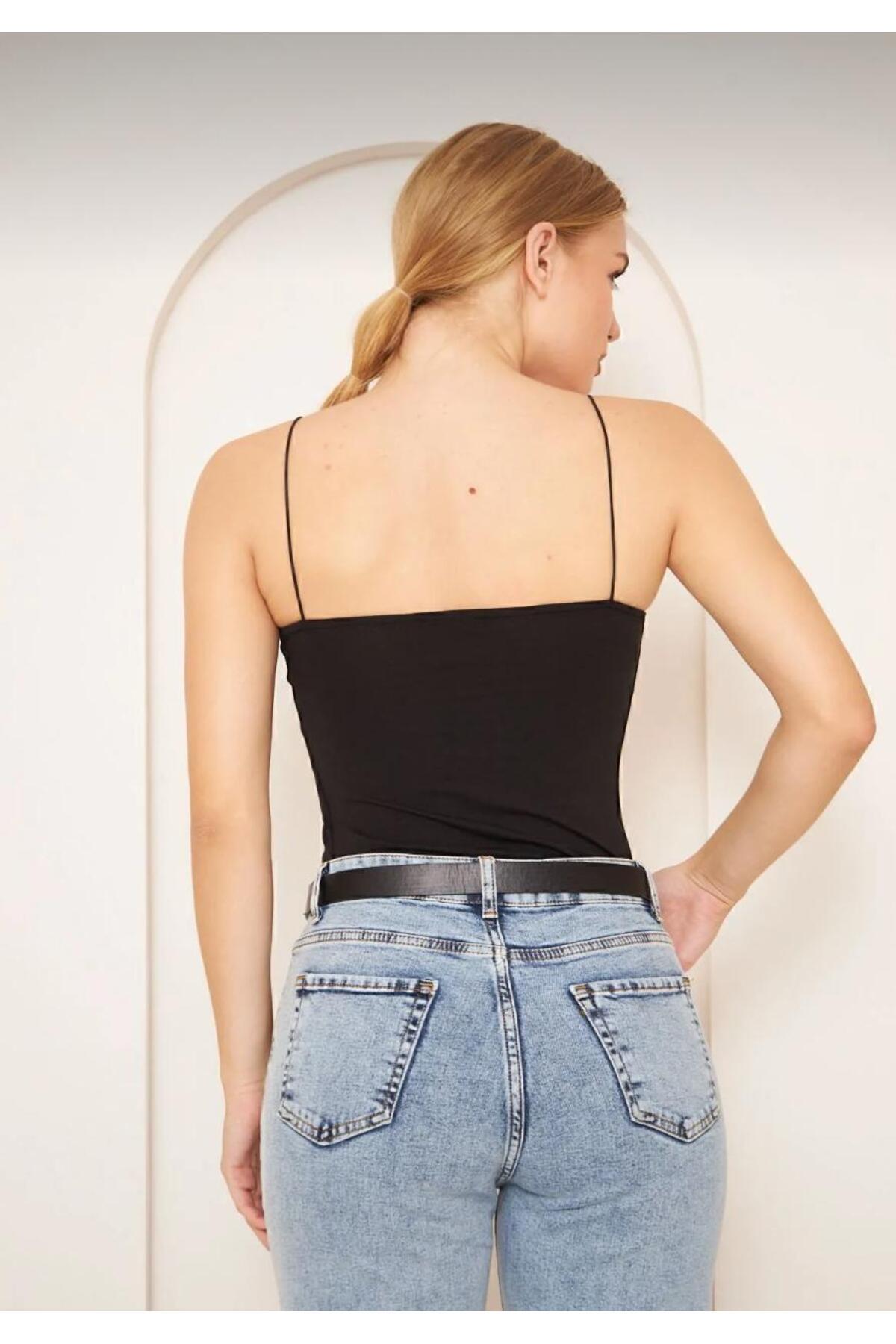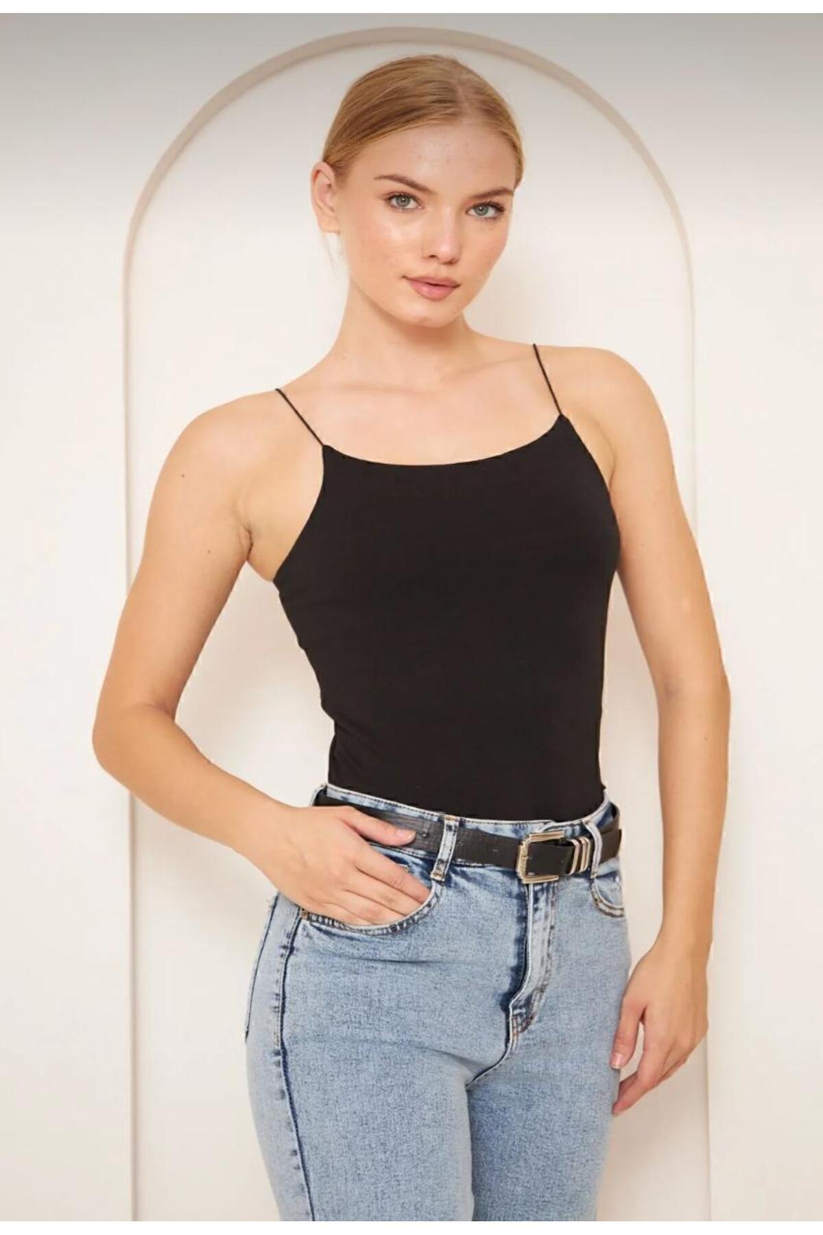 Kadın Siyah İp Askılı 2 Örme Bluz ( 1 Adet ) Kadın Siyah İp Askılı 2 Örme Bluz ( 1 Adet ) MEGOMELLE XL