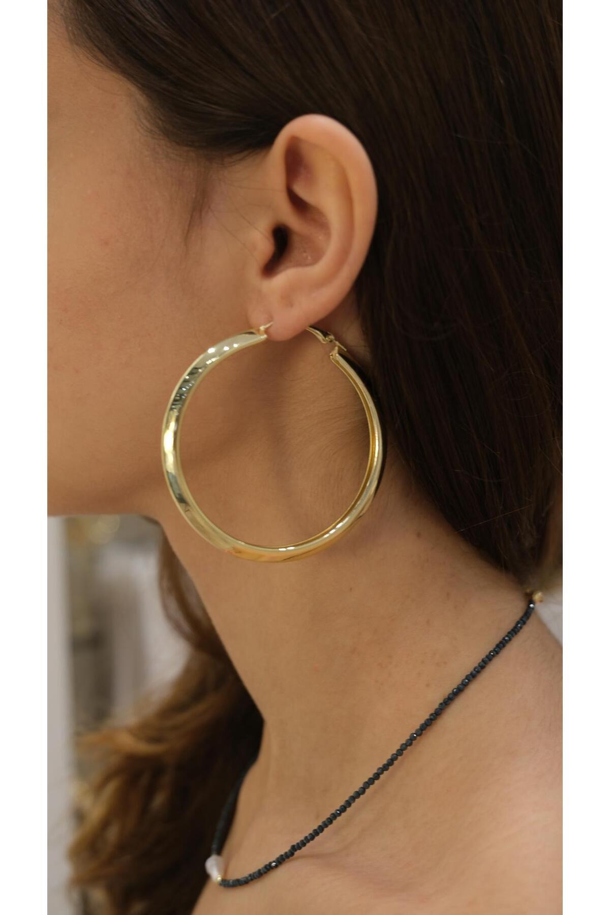 Kadın Gold Desenli Altın Renk Halka Çelik Küpe Büyük Boy Kadın Gold Desenli Altın Renk Halka Çelik Küpe Büyük Boy Kp تک سایز