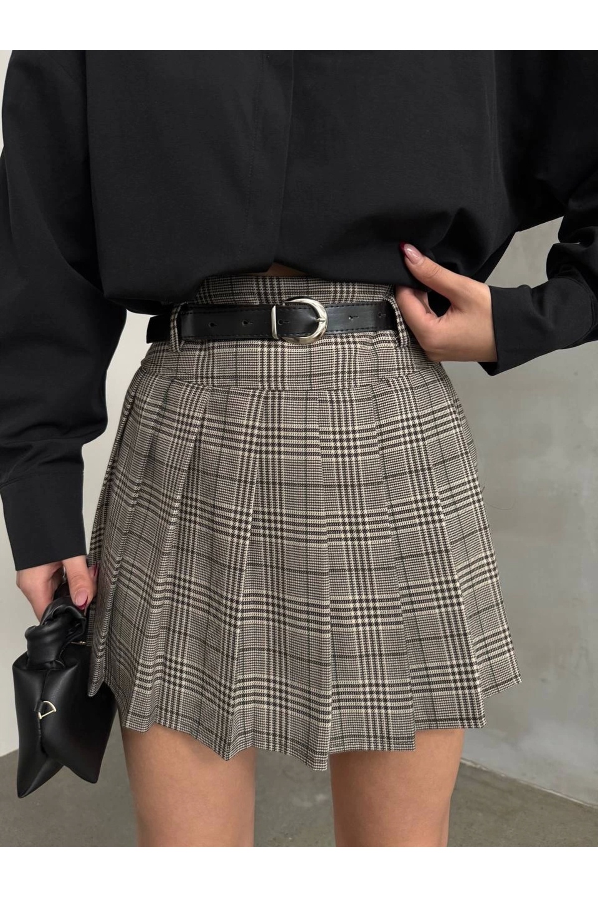 Kadın Bej Ekose Desenli Kemerli Pileli Mini Etek ALC-X13031 Kadın Bej Ekose Desenli Kemerli Pileli Mini Etek ALC-X13031 L