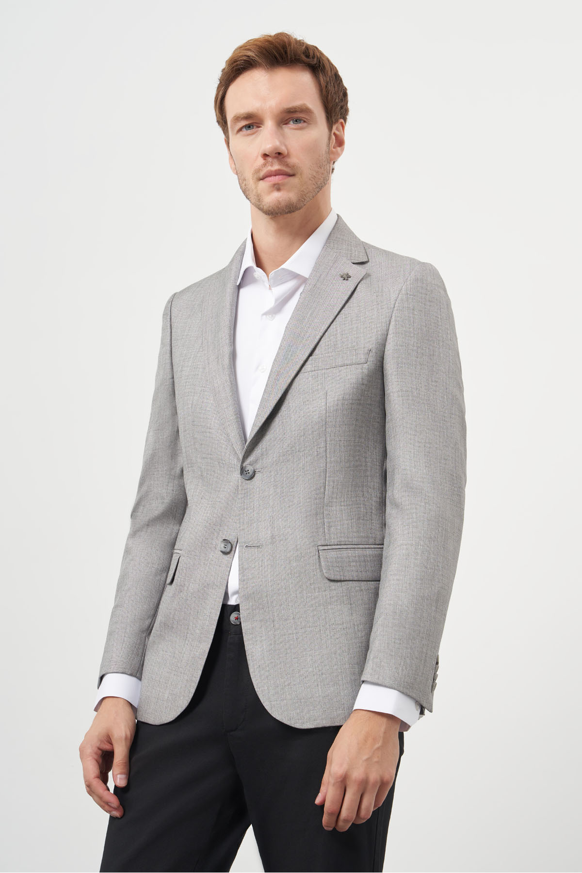 Erkek Gri Poliviskon Slim Fit Mono Yaka Klasik Ceket Erkek Gri Poliviskon Slim Fit Mono Yaka Klasik Ceket 25MC002001 58