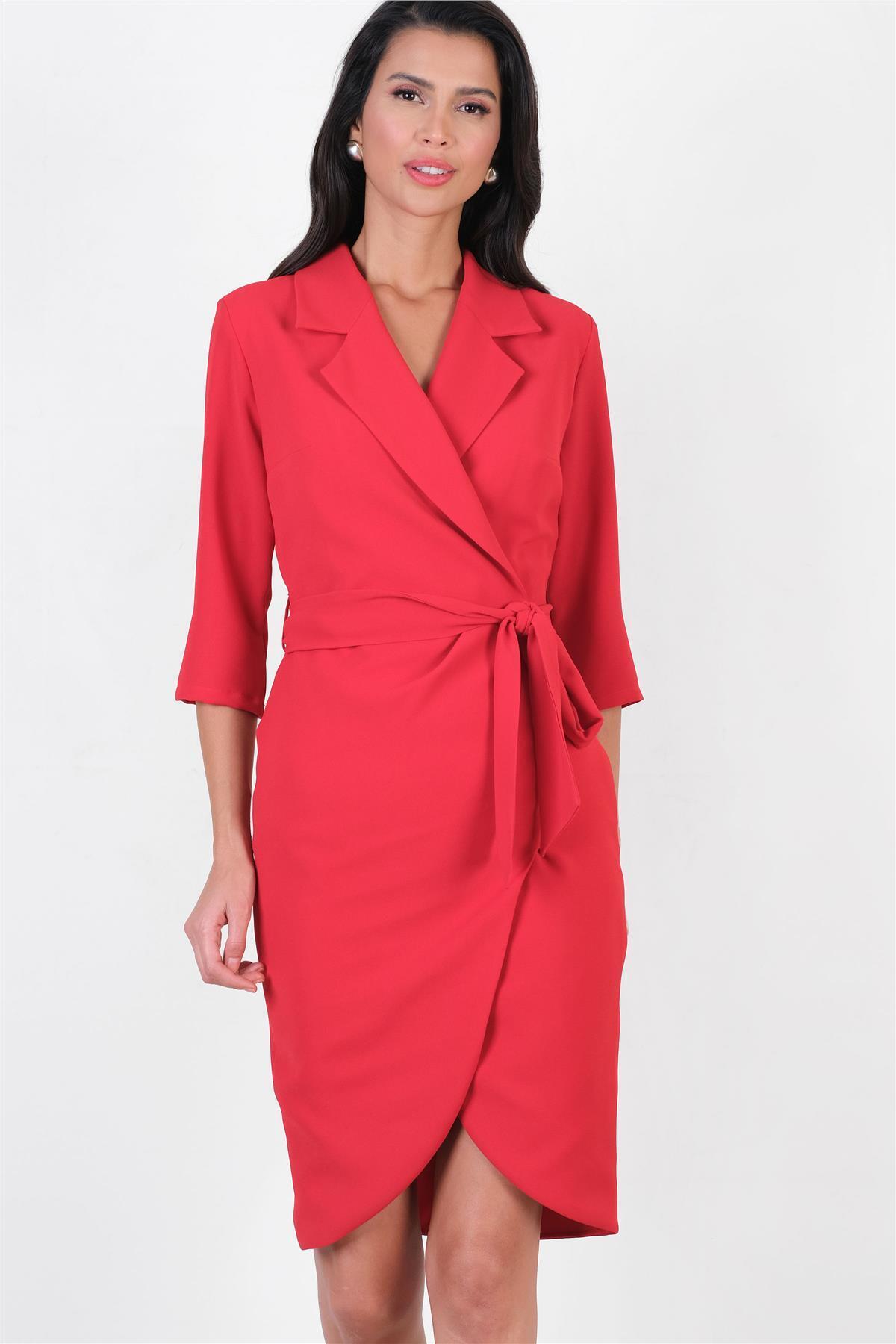 Onesio Kruvaze Yaka Kuşaklı Elbise KIRMIZI Onesio Kruvaze Yaka Kuşaklı Elbise KIRMIZI 51000202 46