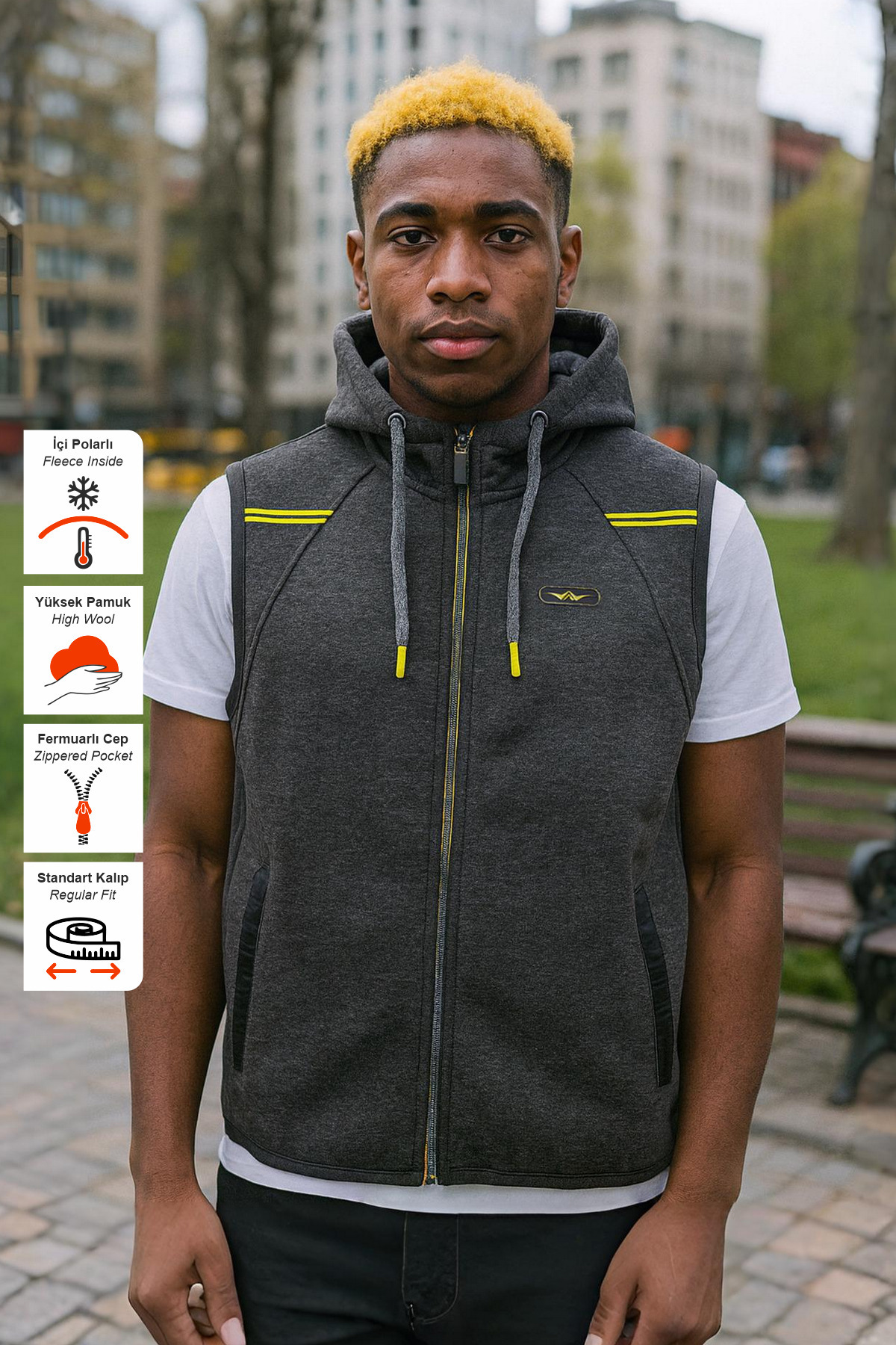 Erkek Füme Yelek Kapüşonlu İçi Pamuklu Kışlık Kumaş Gizli Fermuarlı Cep Erkek Füme Yelek Kapüşonlu İçi Pamuklu Kışlık Kumaş Gizli Fermuarlı Cep 6515-KYELEK 3XL