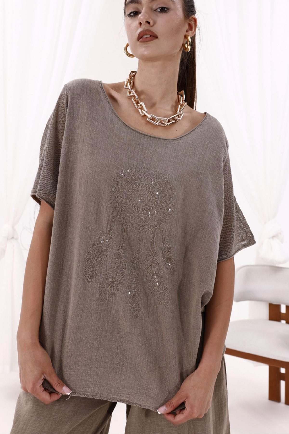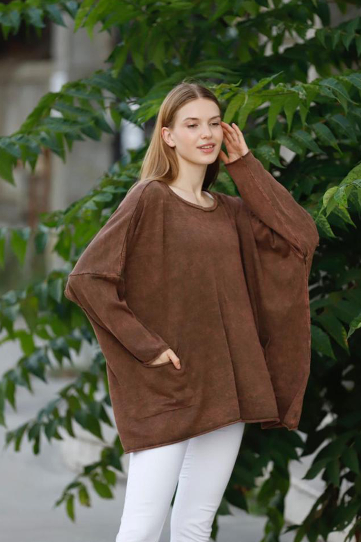 Kadin Haki Parçalı Asimetrik Uzun Kollu Bluz Sweatshirt Kadin Haki Parçalı Asimetrik Uzun Kollu Bluz Sweatshirt 231099-ROSIDAM XL