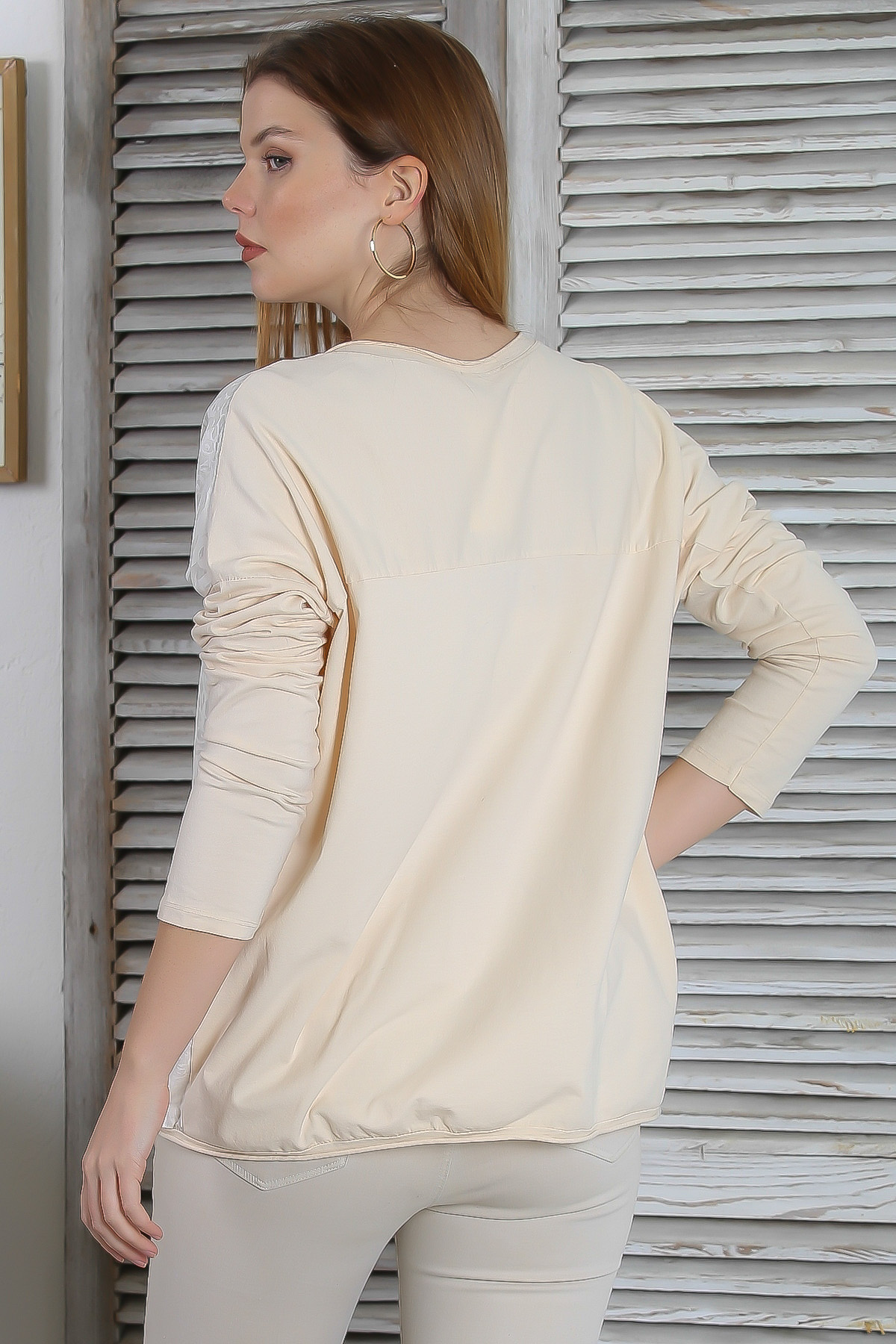 İtalyan Bej Yuvarlak Yaka Uzun Kol Varak Baskılı Casual Dokuma Bluz İtalyan Bej Yuvarlak Yaka Uzun Kol Varak Baskılı Casual Dokuma Bluz M10010200BL91719 2XL