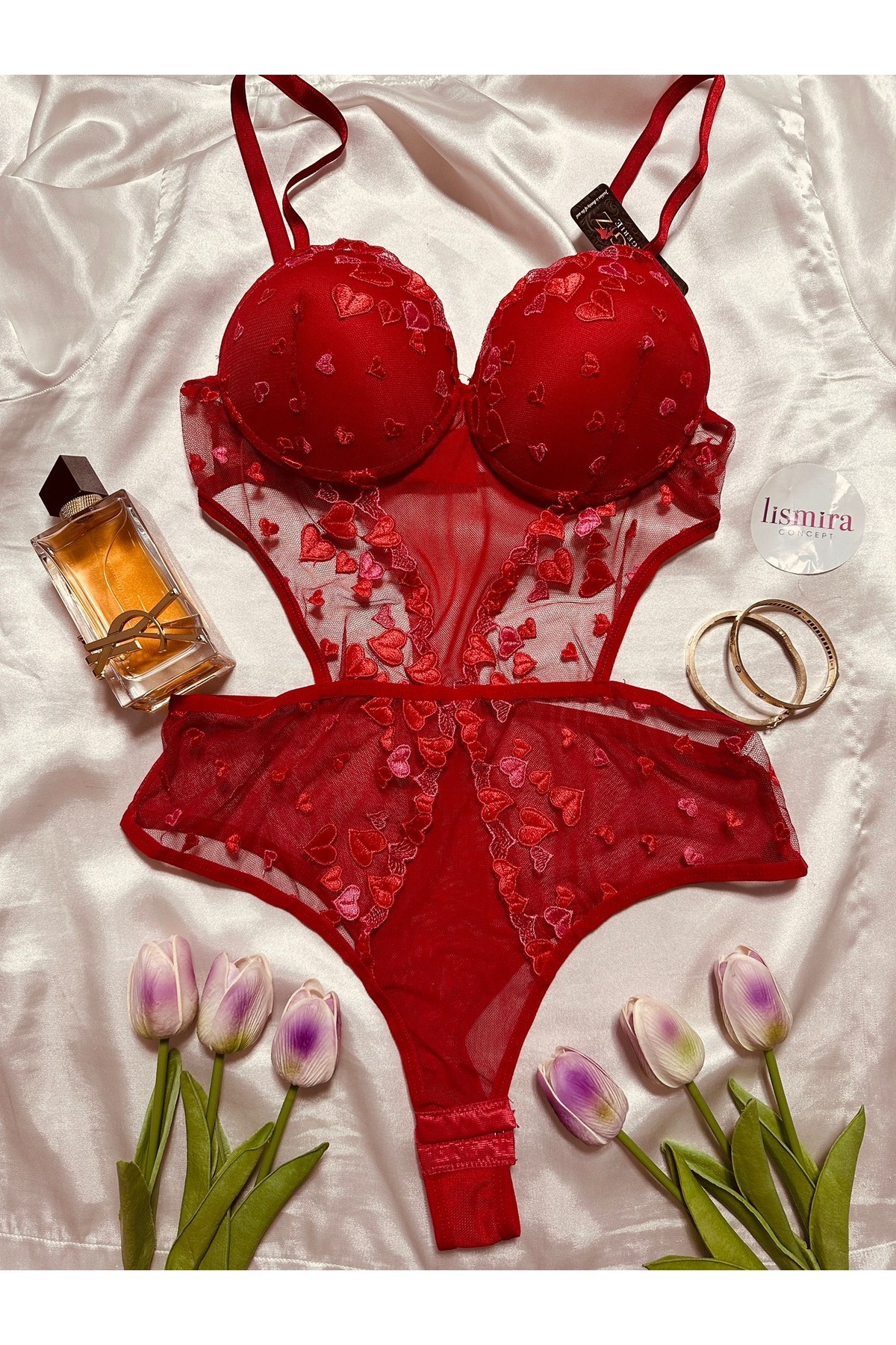 Kırmızı Dantelli Bodysuit Kırmızı Dantelli Bodysuit İÇ15 90