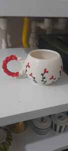 Baloncuk Örgü Kulp Kabartmalı Sarmaşık Çiçek Desenli El Yapımı Seramik Kupa Baloncuk Örgü Kulp Kabartmalı Sarmaşık Çiçek Desenli El Yapımı Seramik Kupa sarmaşıkkırmızı