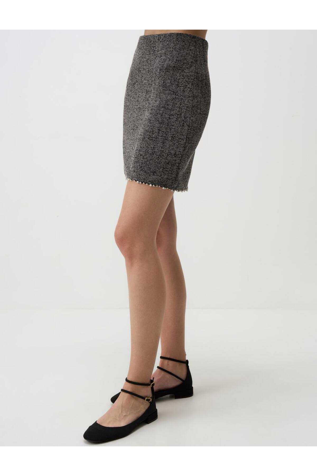 Antrasit Melanj Dar Kesim Yüksek Bel İnci Detaylı Örme Mini Etek Antrasit Melanj Dar Kesim Yüksek Bel İnci Detaylı Örme Mini Etek 4WW151597 XL