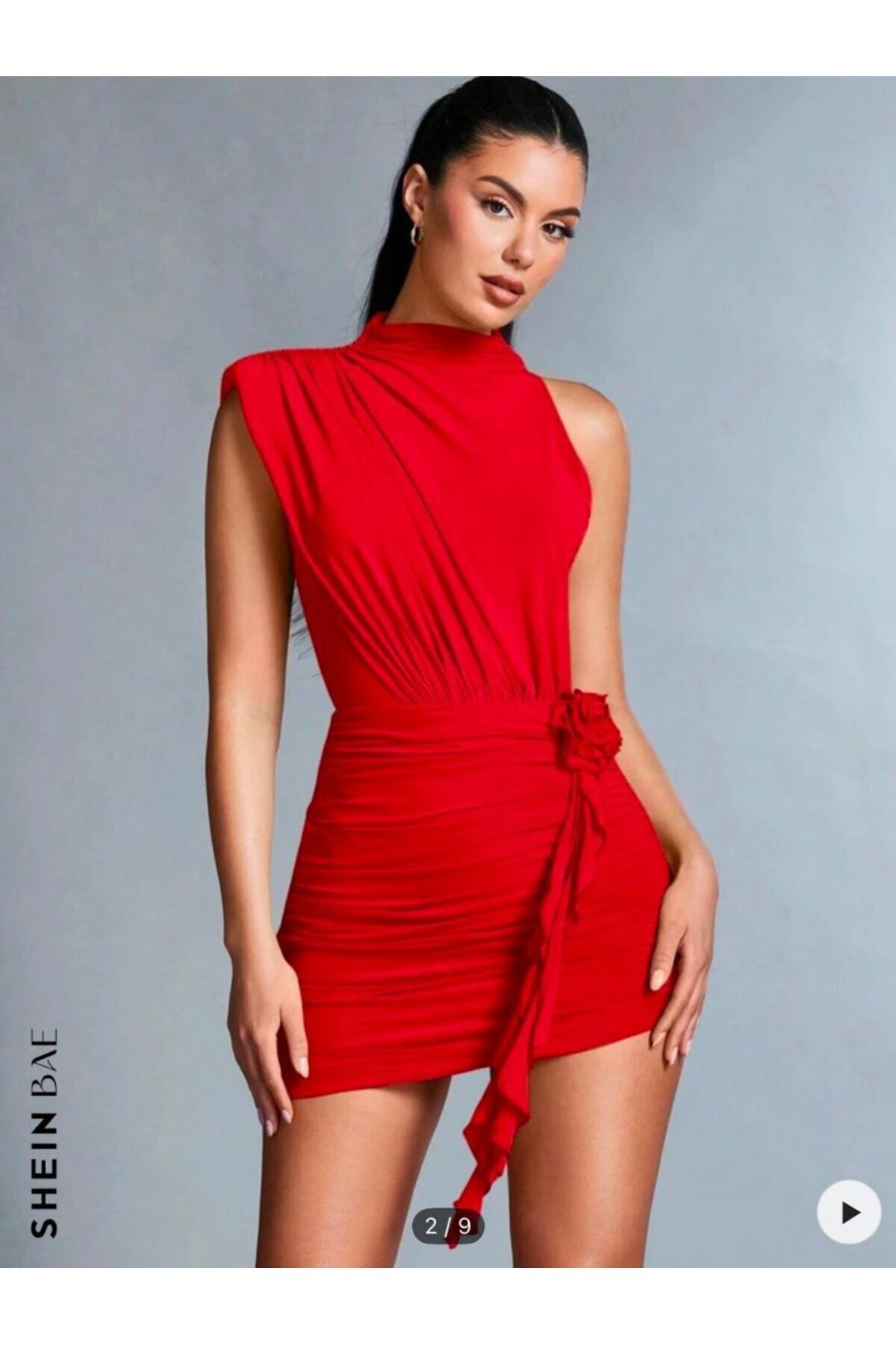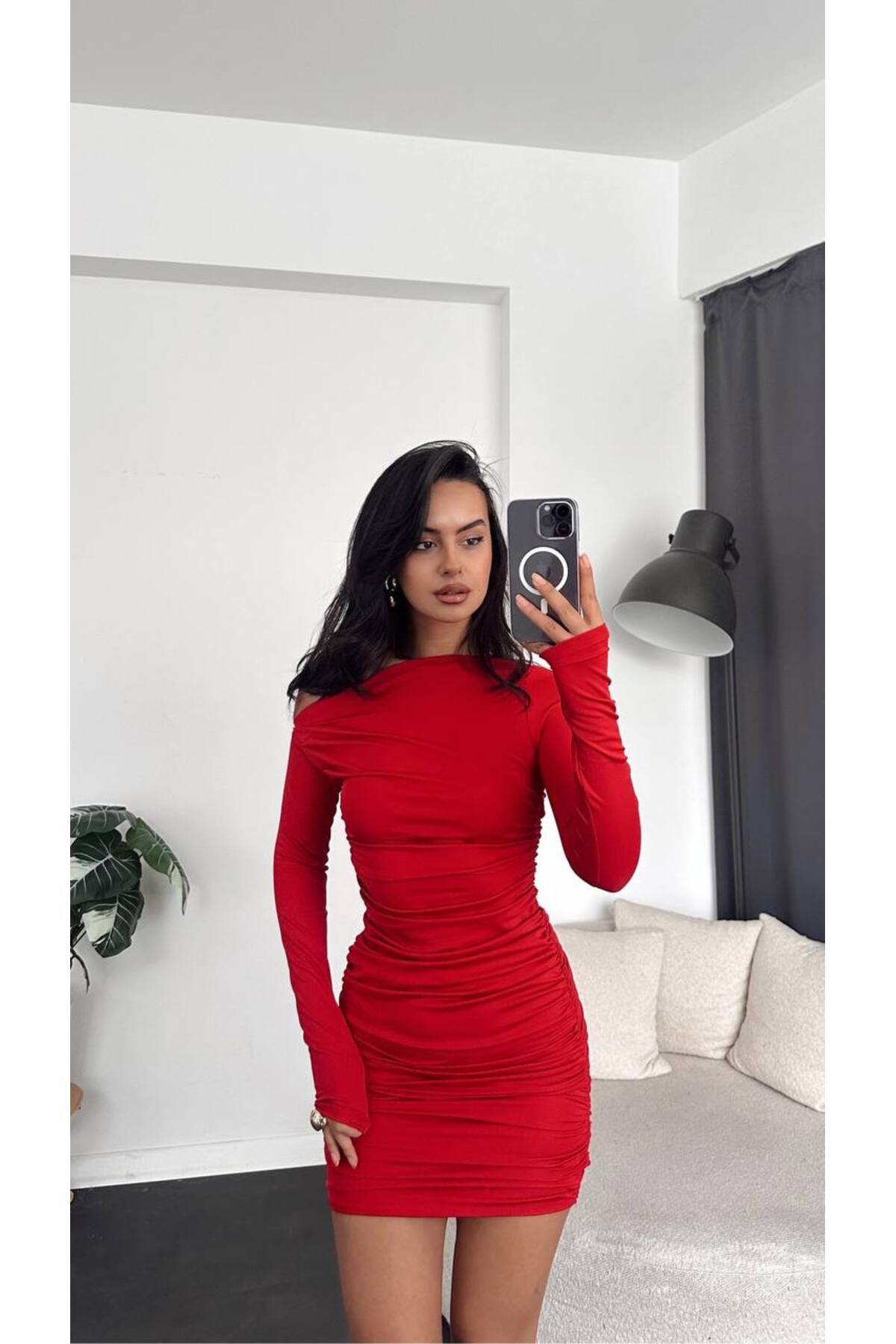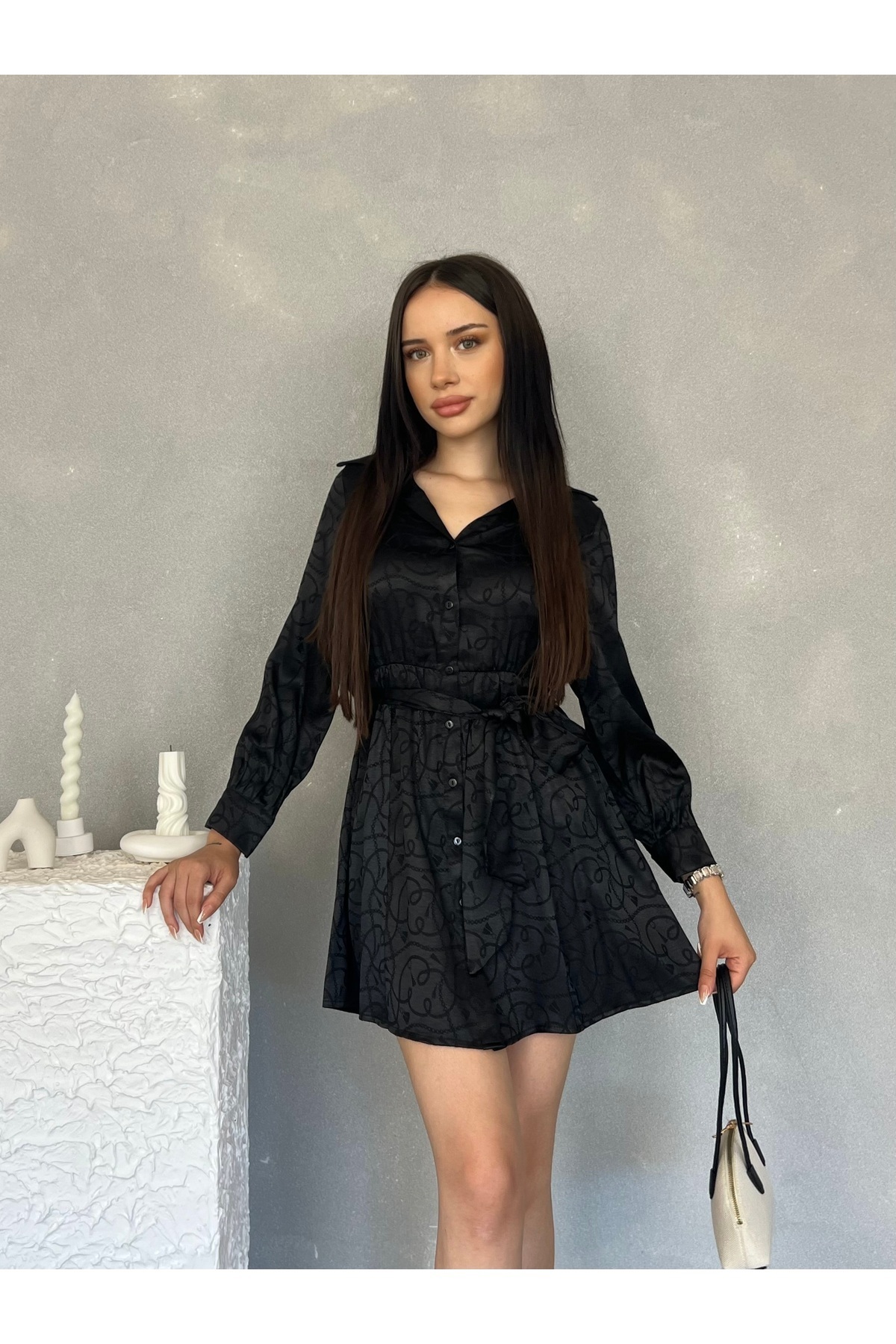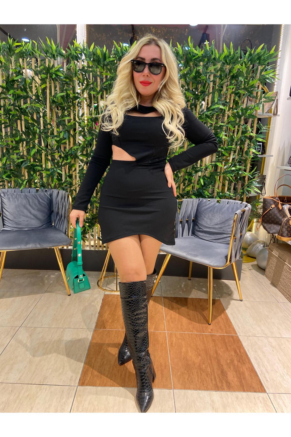 Atlas Kumaş Deri Detaylı Kısa Elbise-Siyah Atlas Kumaş Deri Detaylı Kısa Elbise-Siyah P26039S3083 L