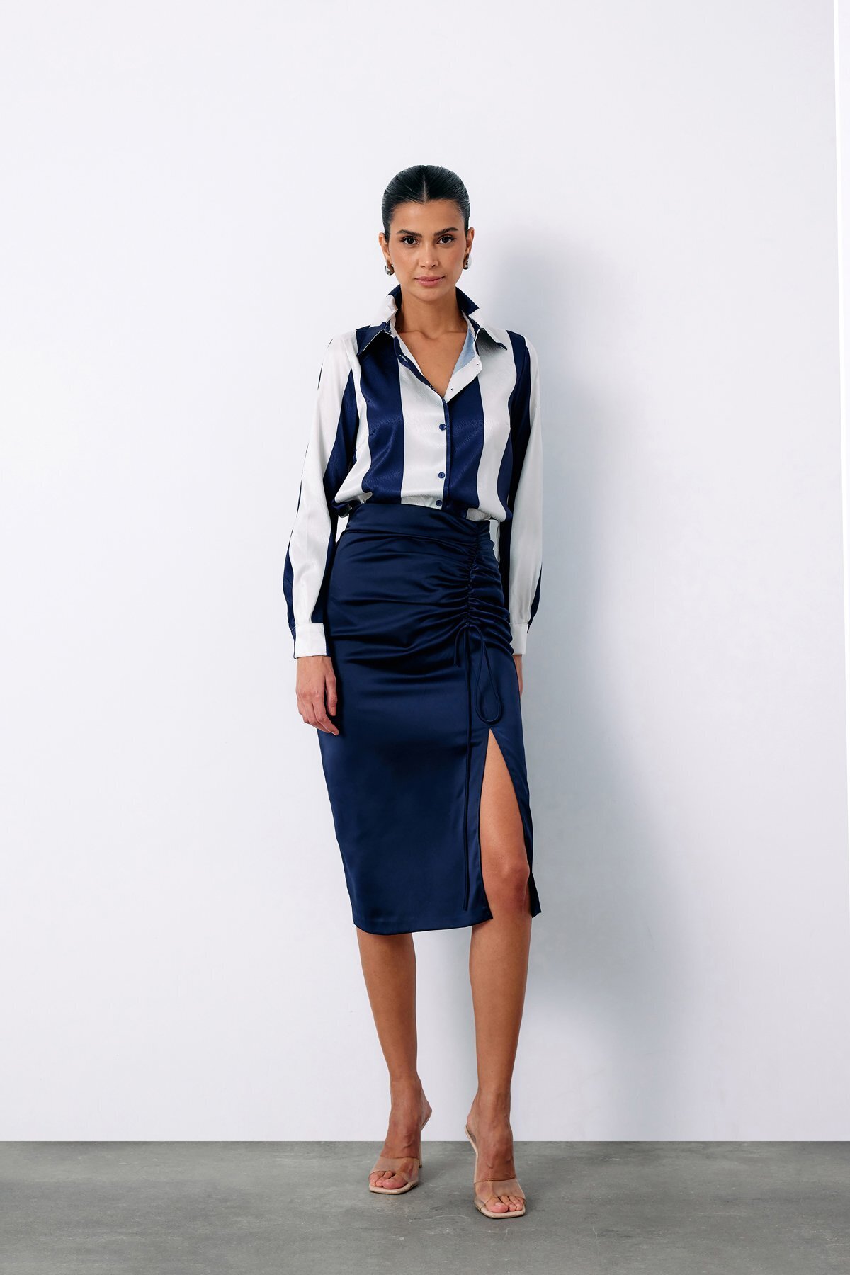 Çizgili Düz Gömlek - LACİVERT Çizgili Düz Gömlek - LACİVERT STN139KGO1586 42