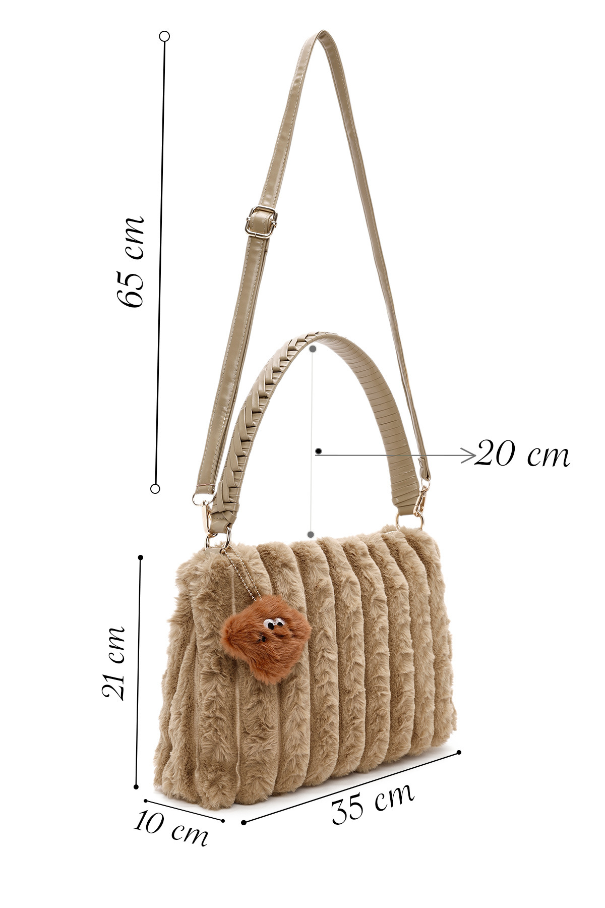 Kadın Bej Aksesuar Detaylı Peluş Omuz Çantası 24WBD2668PH Kadın Bej Aksesuar Detaylı Peluş Omuz Çantası 24WBD2668PH Standart