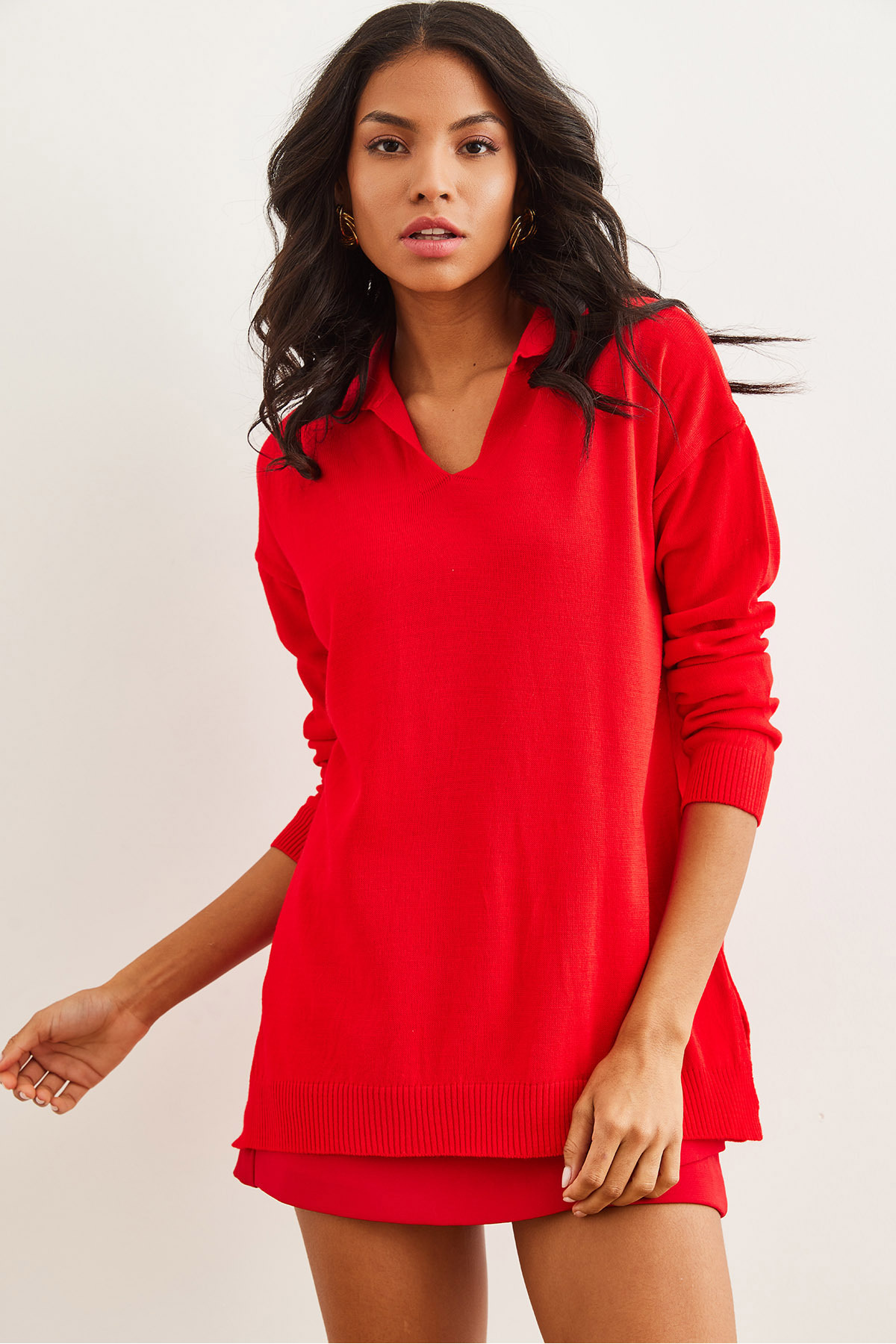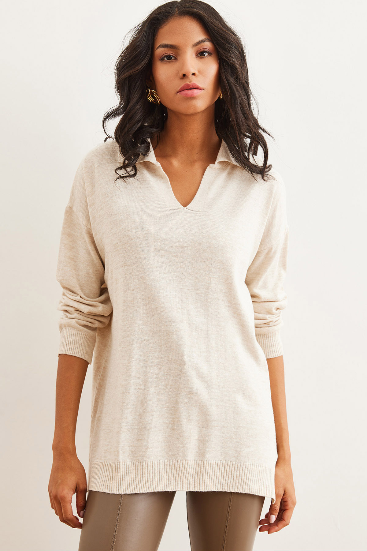 Kadın Saks Mavi Polo Yaka Basic Triko Kazak KZK-19000871 Kadın Saks Mavi Polo Yaka Basic Triko Kazak KZK-19000871 تک سایز