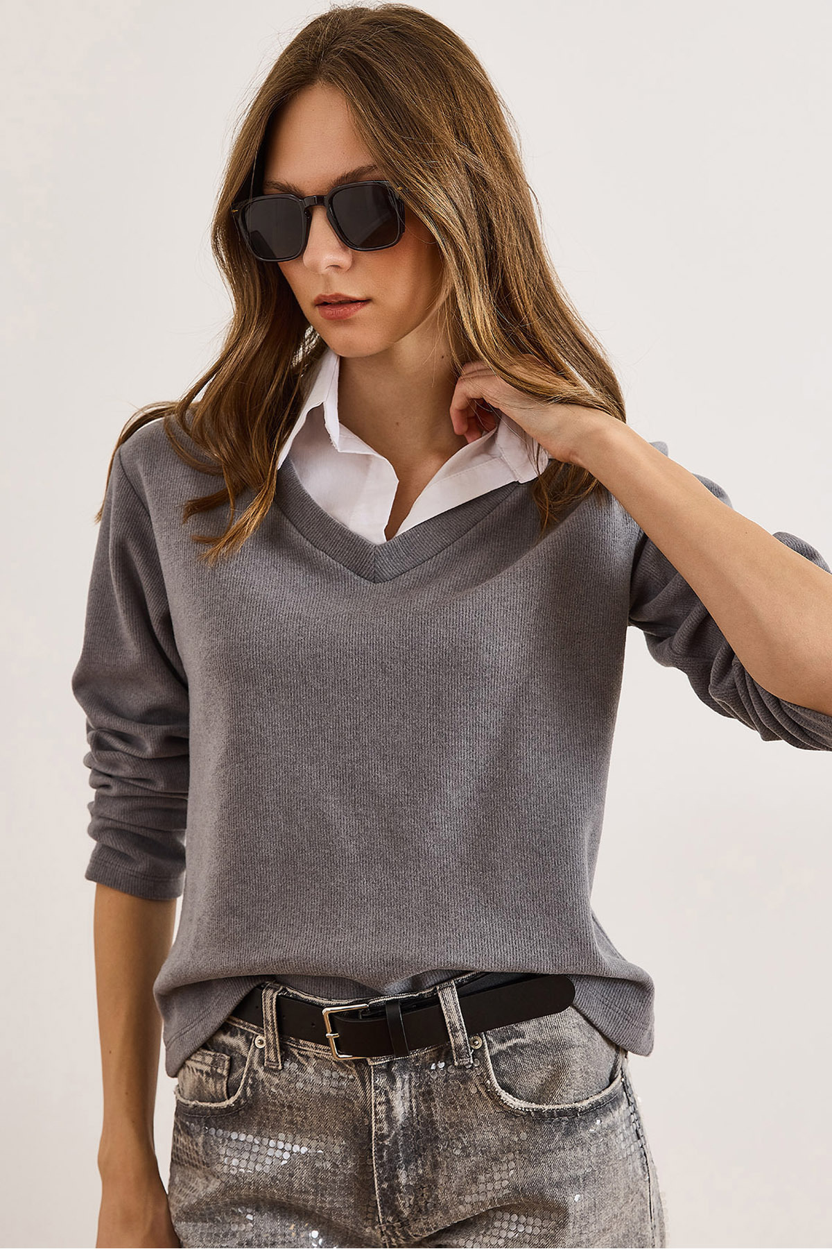 Kadın Bordo Gömlek Yaka Detaylı Selanik Bluz BLZ-19002777 Kadın Bordo Gömlek Yaka Detaylı Selanik Bluz BLZ-19002777 L