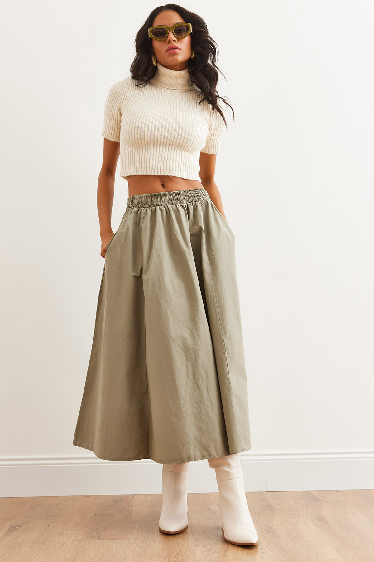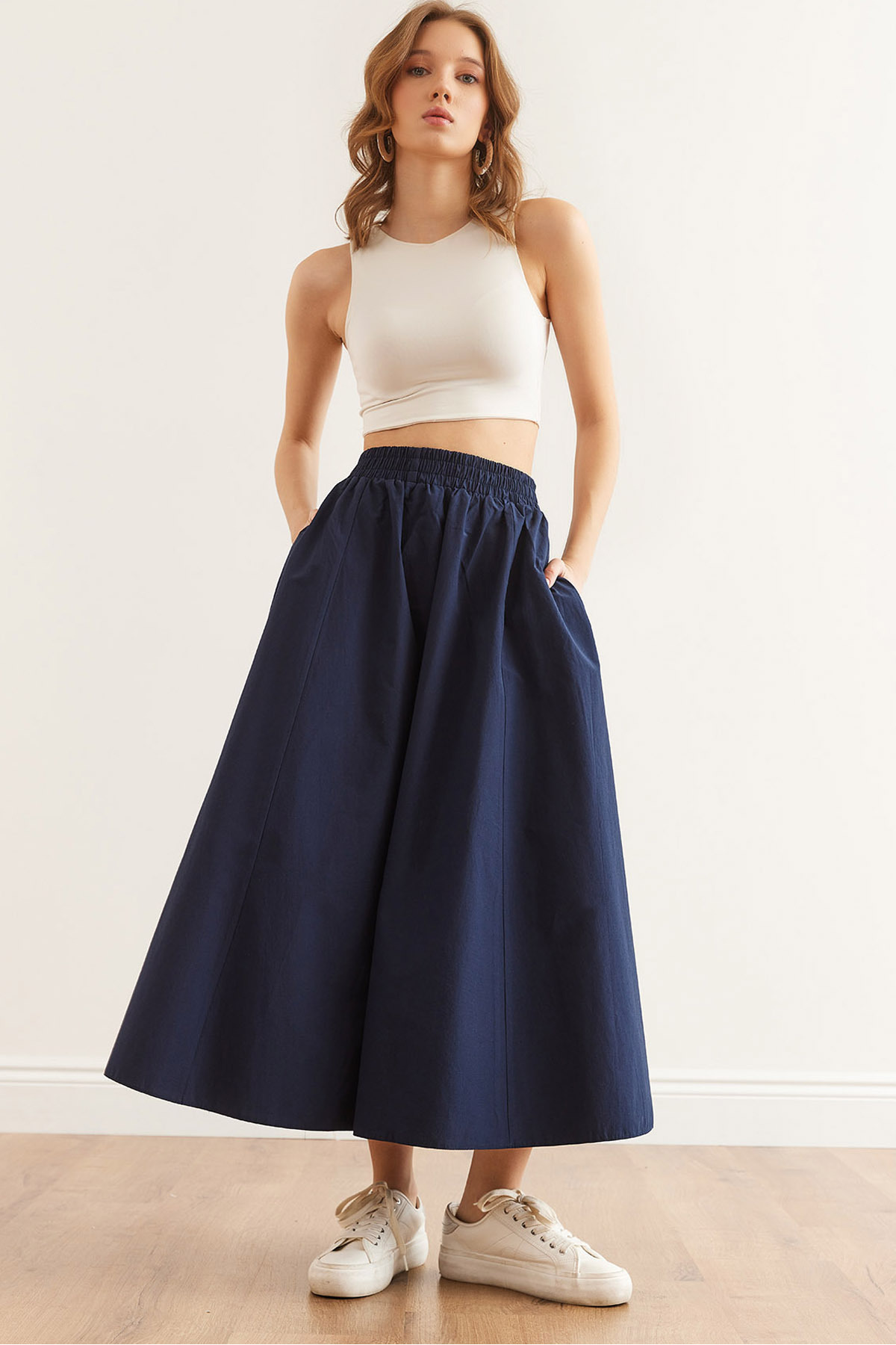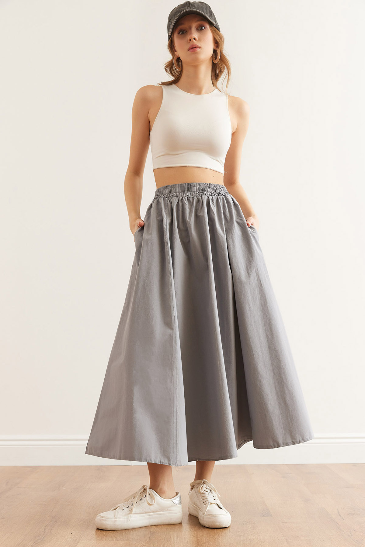 Kadın Siyah Beli Lastikli Paraşüt Çan Etek ETK-19000280 Kadın Siyah Beli Lastikli Paraşüt Çan Etek ETK-19000280 L