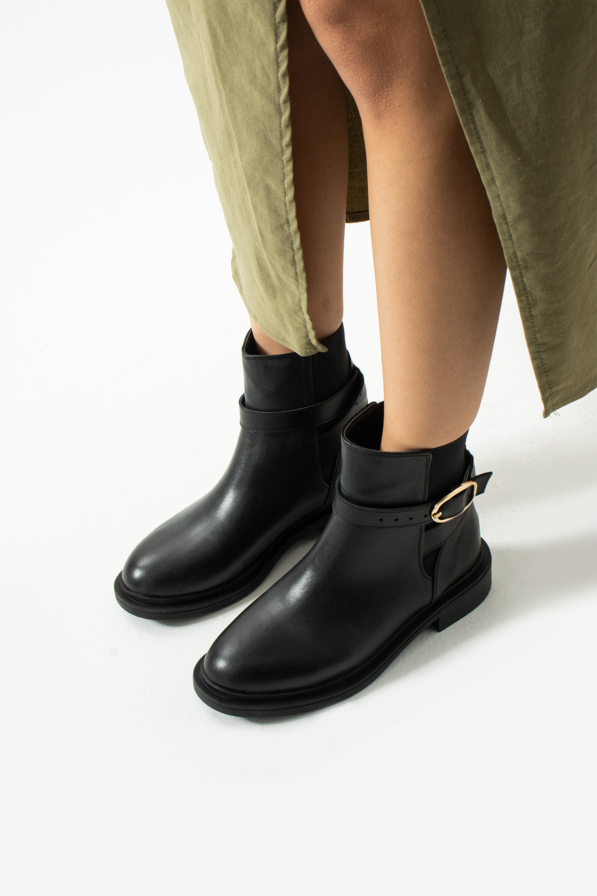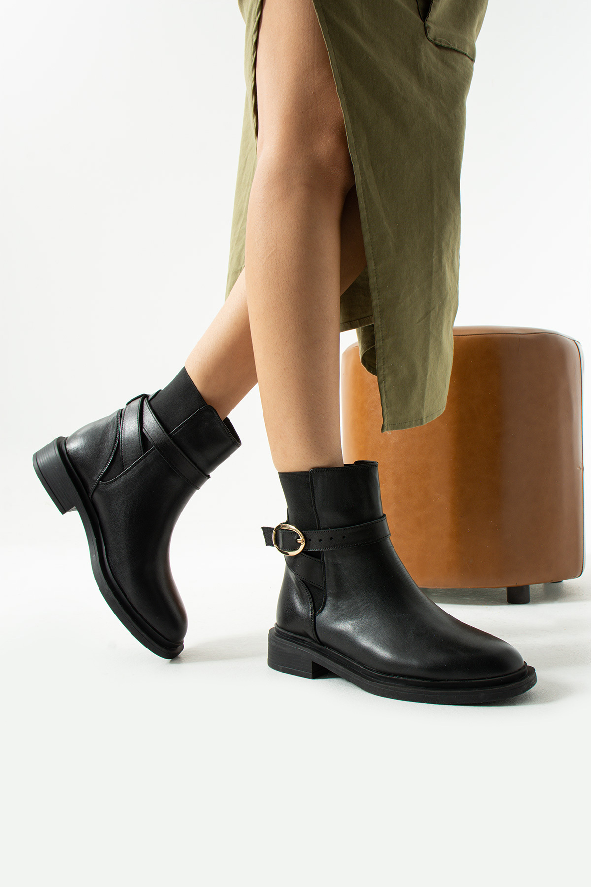 Huns Kadın Hakiki Deri Tek Tokalı Fermuarlı Siyah Bot Huns Kadın Hakiki Deri Tek Tokalı Fermuarlı Siyah Bot WVS.016 40