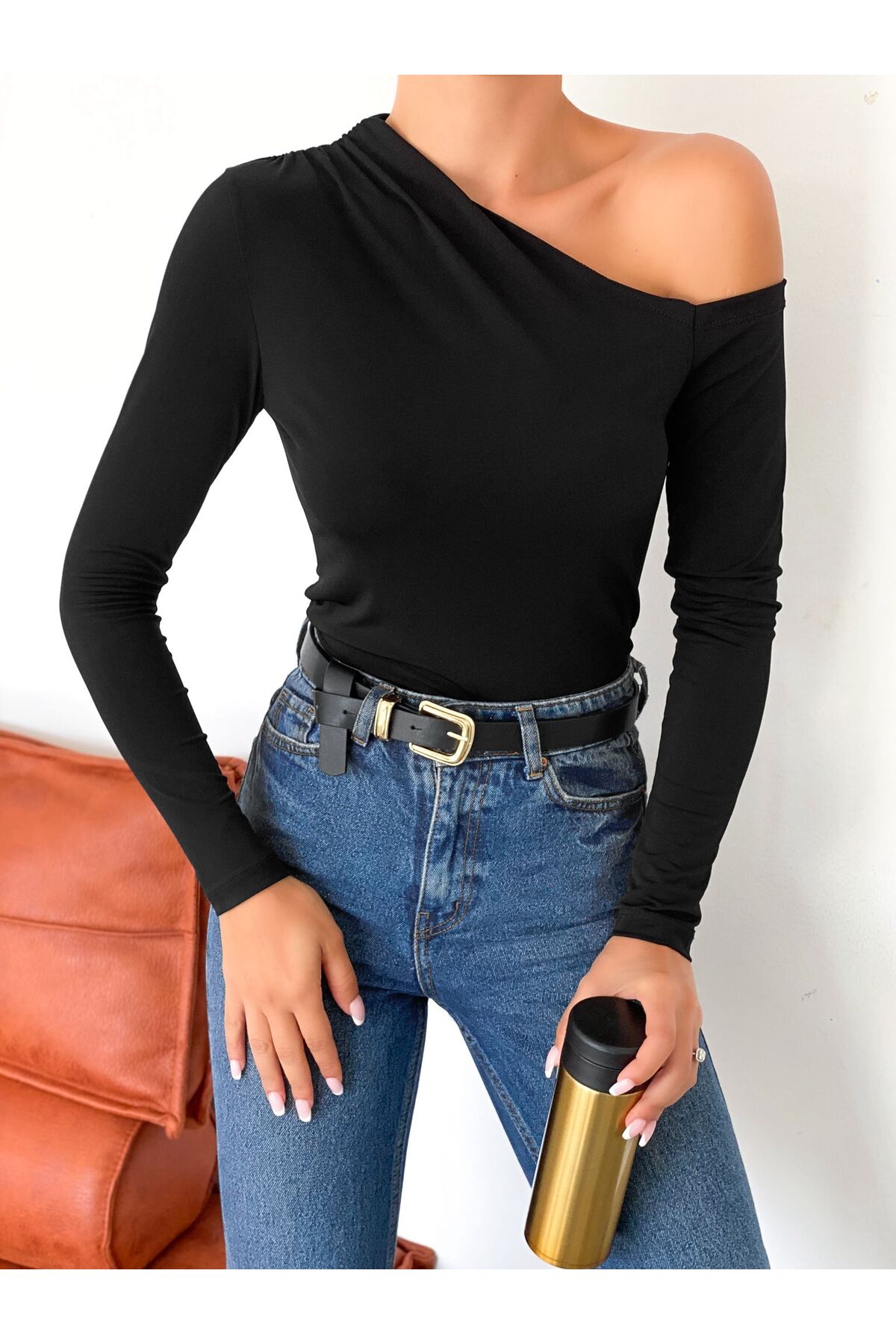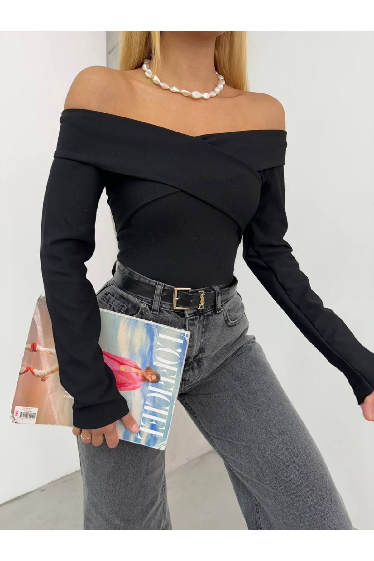 Kadın Madonna Yaka Ottoman Çapraz Bantlı Bluz Kadın Madonna Yaka Ottoman Çapraz Bantlı Bluz KMYOÇBB3091 XL