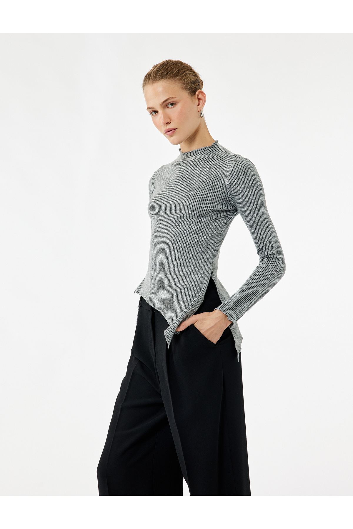 Yırtmaç Detaylı Asimetrik Uzun Kollu Bisiklet Yaka Esnek Üst Yırtmaç Detaylı Asimetrik Uzun Kollu Bisiklet Yaka Esnek Üst M2BS7FRP 2XL