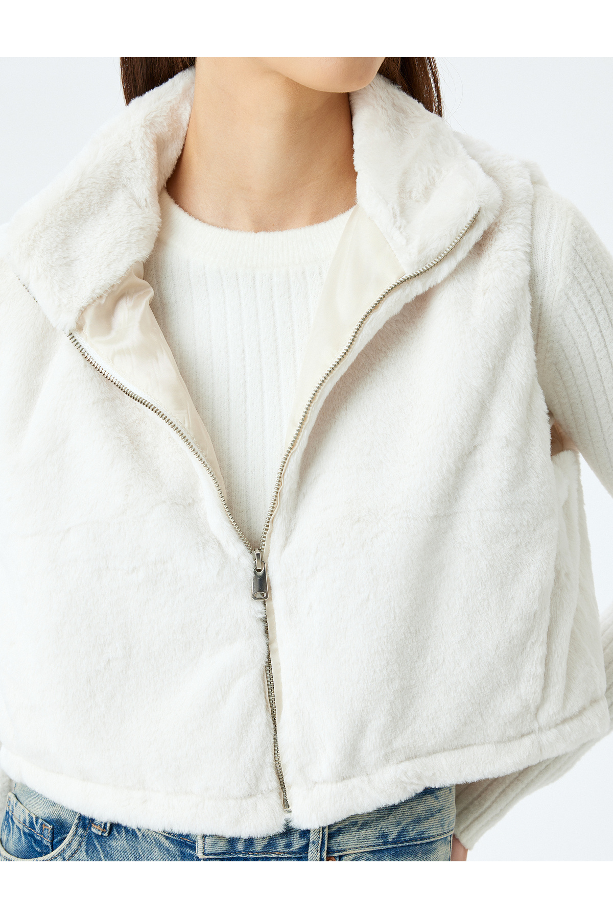 Suni Kürk Dik Yaka Fermuarlı Crop Astarlı Yelek Suni Kürk Dik Yaka Fermuarlı Crop Astarlı Yelek 5WAL20091IW XL