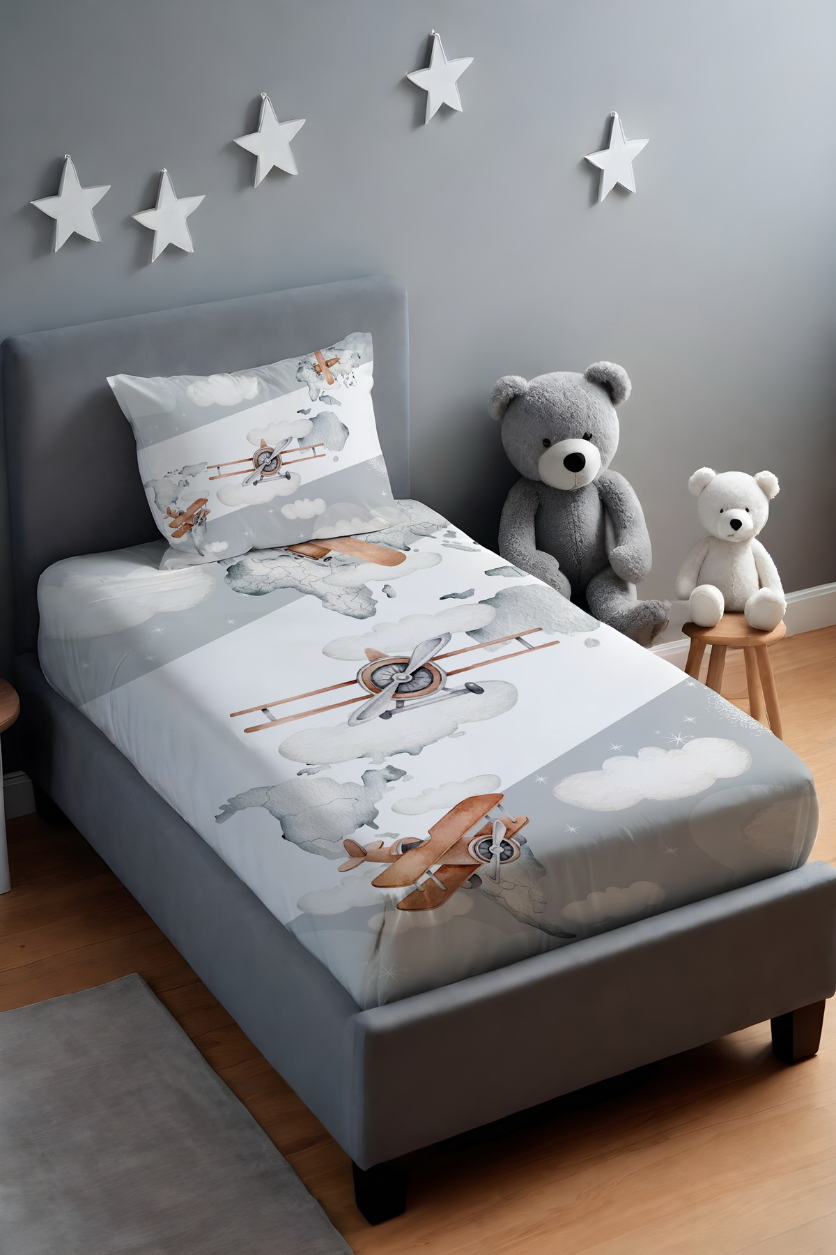 Gri Yan Şeritli Uçaklar Desenli Yatak Örtüsü ve Yastık Kılıfı Gri Yan Şeritli Uçaklar Desenli Yatak Örtüsü ve Yastık Kılıfı evortu2082 تک سایز