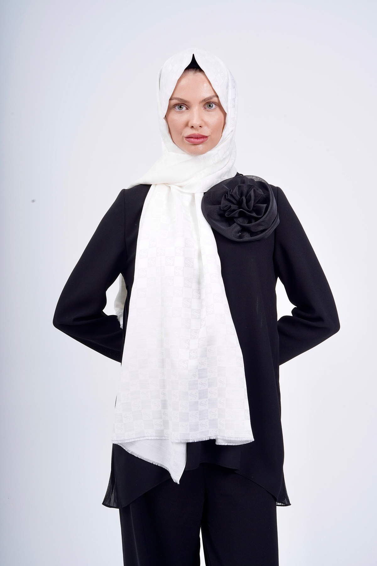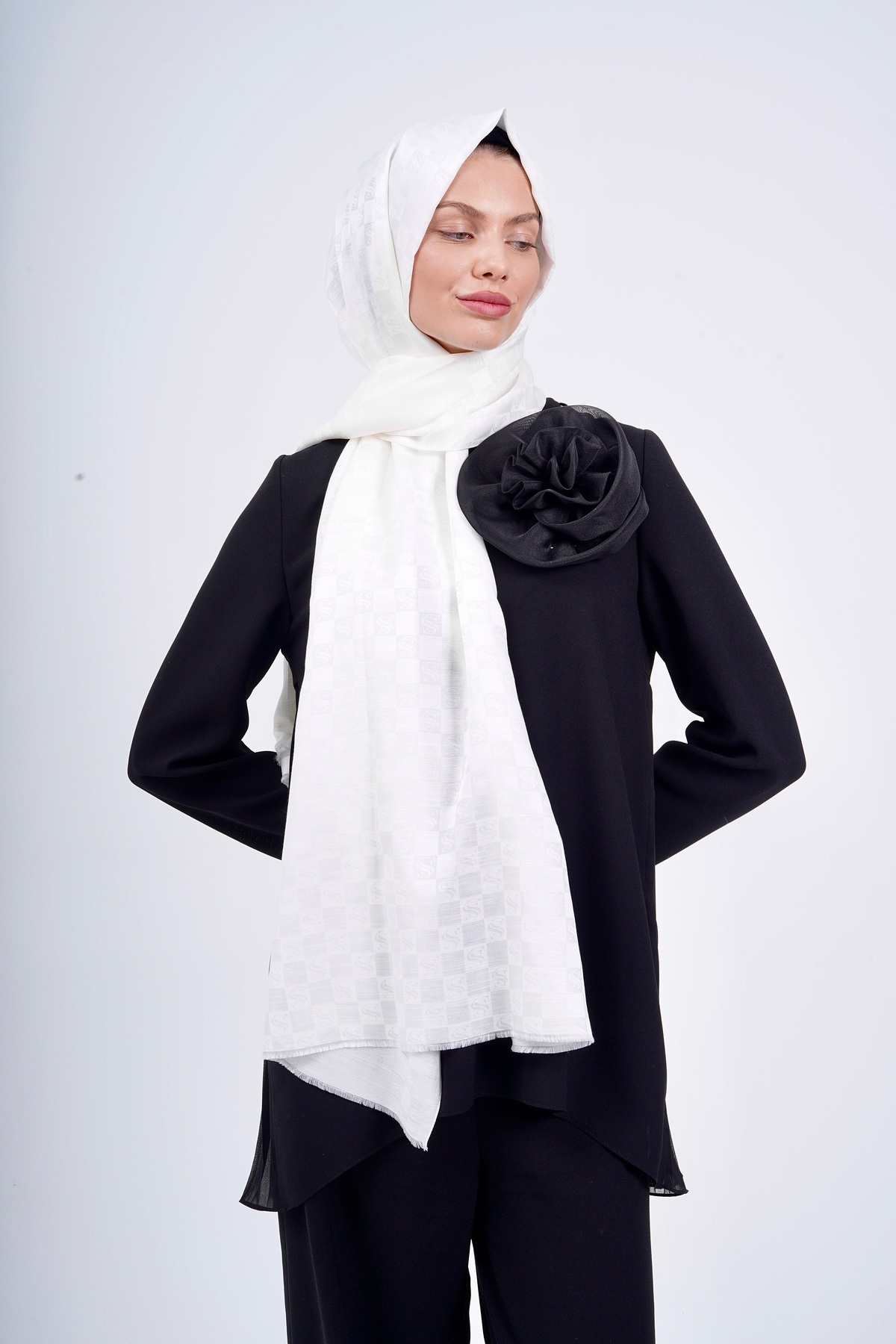 İpek Monogram Beyaz Kadın Şal İpek Monogram Beyaz Kadın Şal İMS24000101.V5 190 x 75
