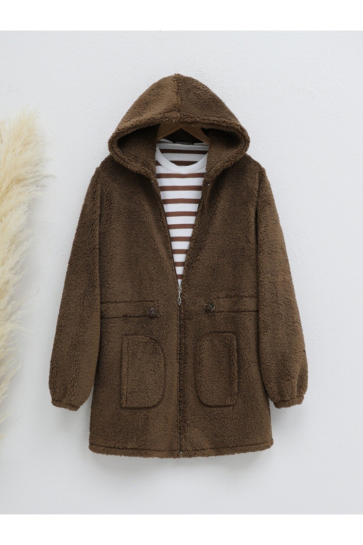 Kapşonlu Fermuarlı Beli Lastikli Peluş Kapşonlu Fermuarlı Beli Lastikli Peluş 39-6039 2XL