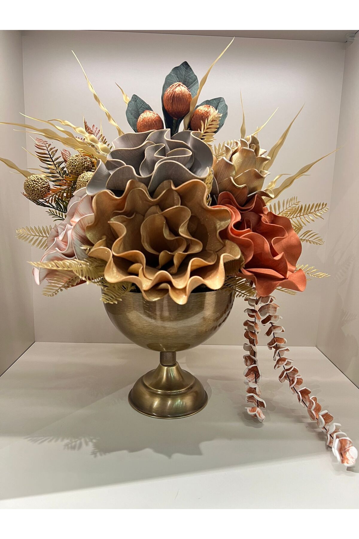 Yapay Çiçek Aranjmalı Gold Yassı Vazo No:14 Yapay Çiçek Aranjmalı Gold Yassı Vazo No:14 gldyss14 تک سایز