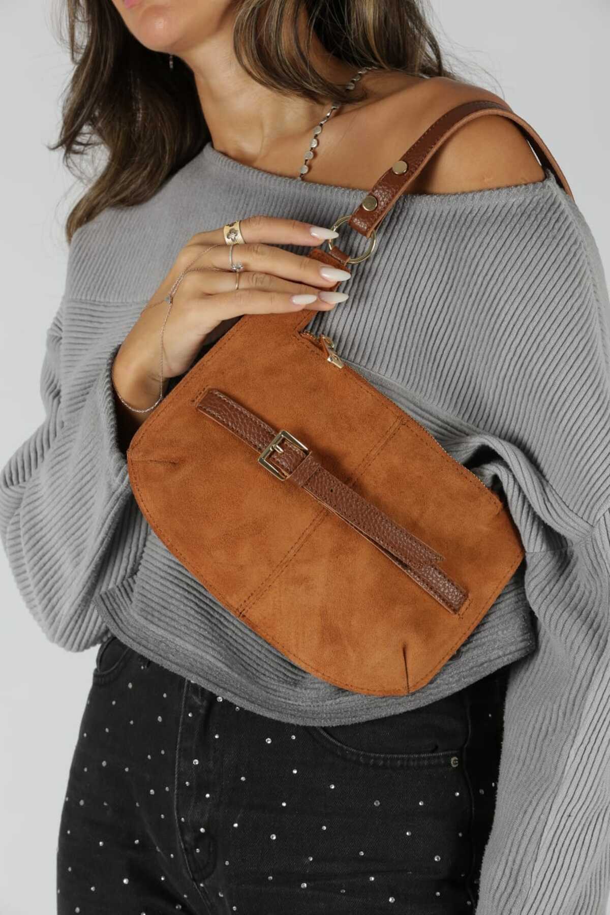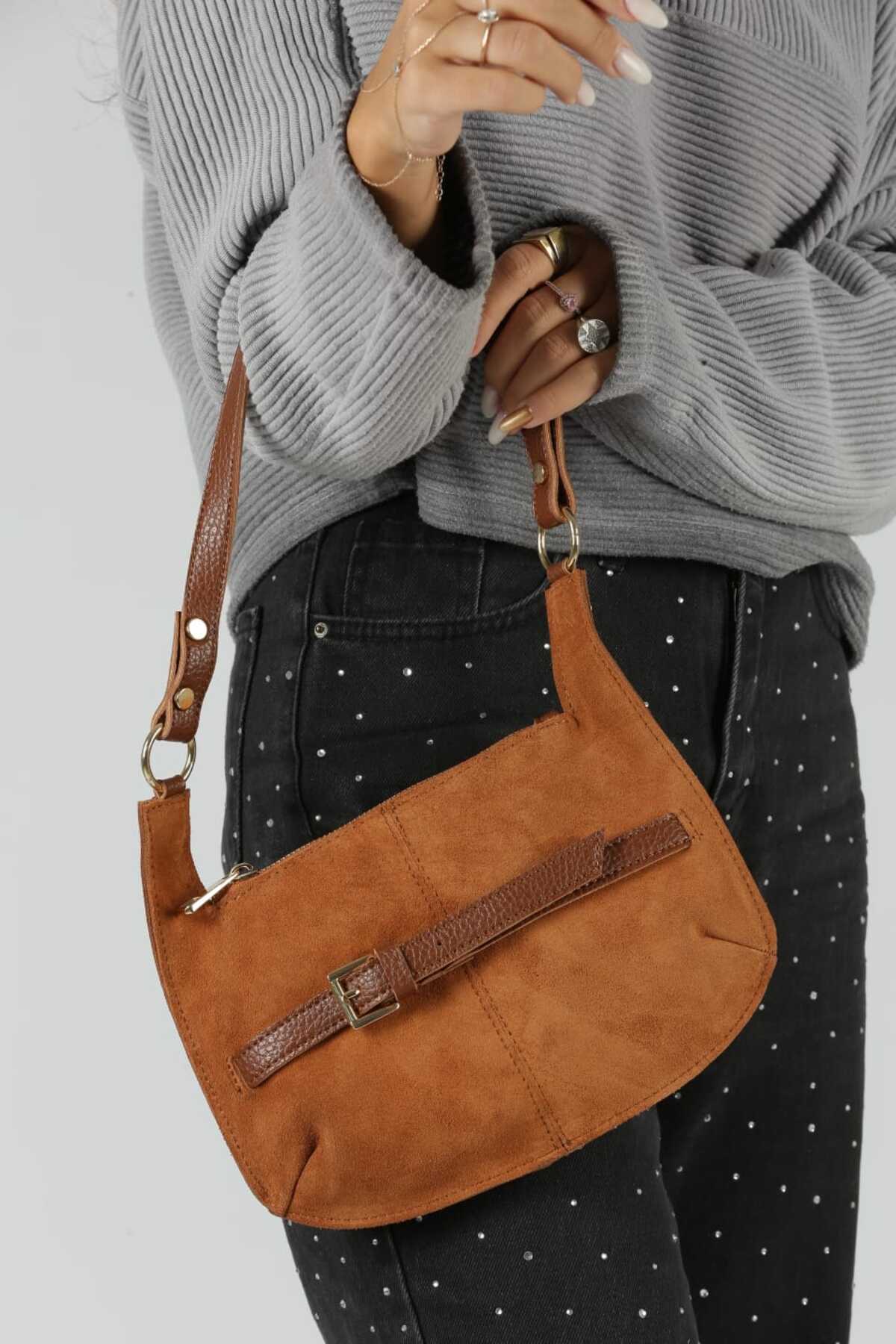 Kadın Taba Süet Gold Toka Detaylı Slım Omuz Çantası Kadın Taba Süet Gold Toka Detaylı Slım Omuz Çantası MB001043 تک سایز